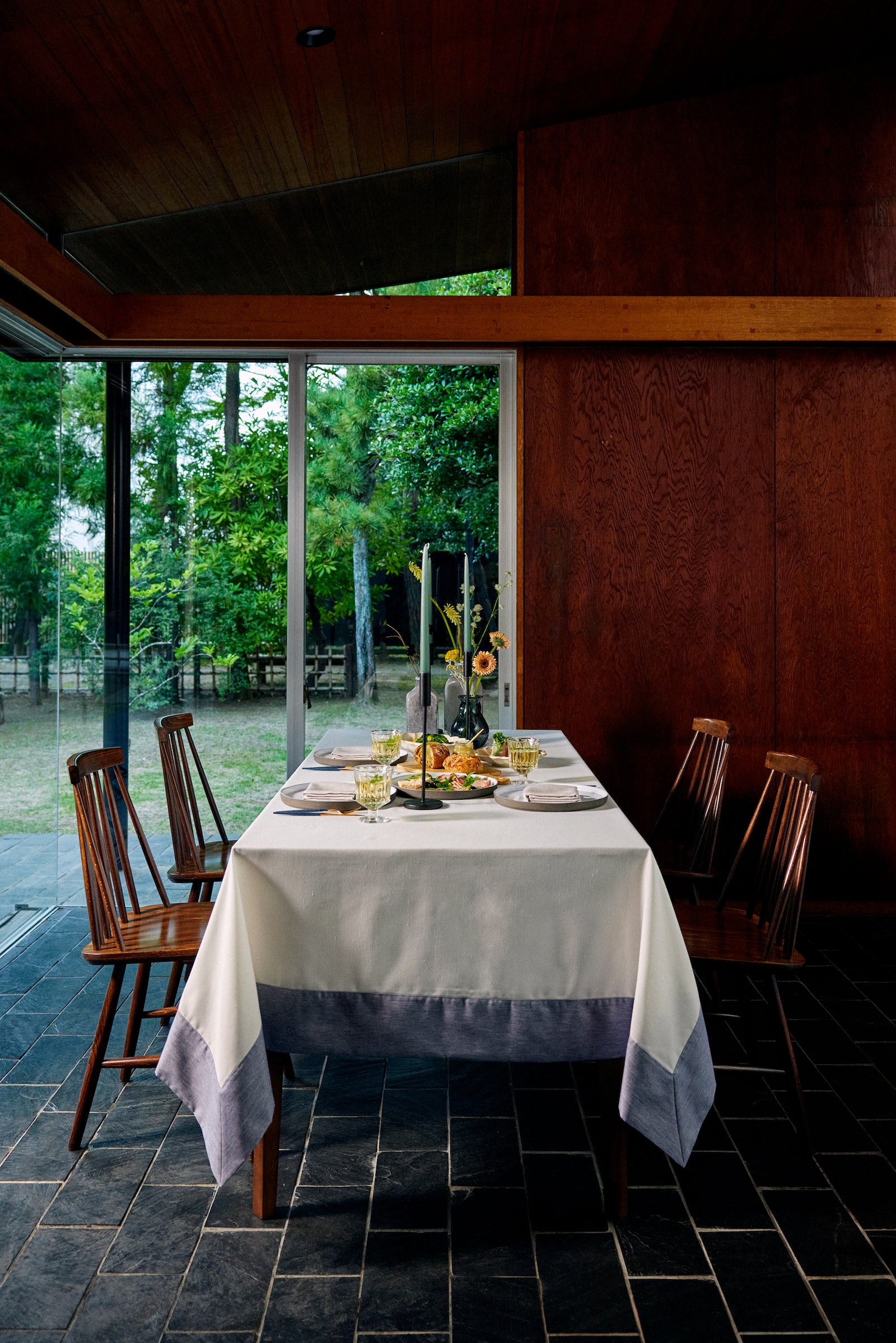 ヨーロピアンな表情を追求したセカンドコレクションではテーブルクロスに加え、テーブルランナー、ランチョンマット、エプロンといったより食卓にフォーカスした新たなアイテムも登場。
