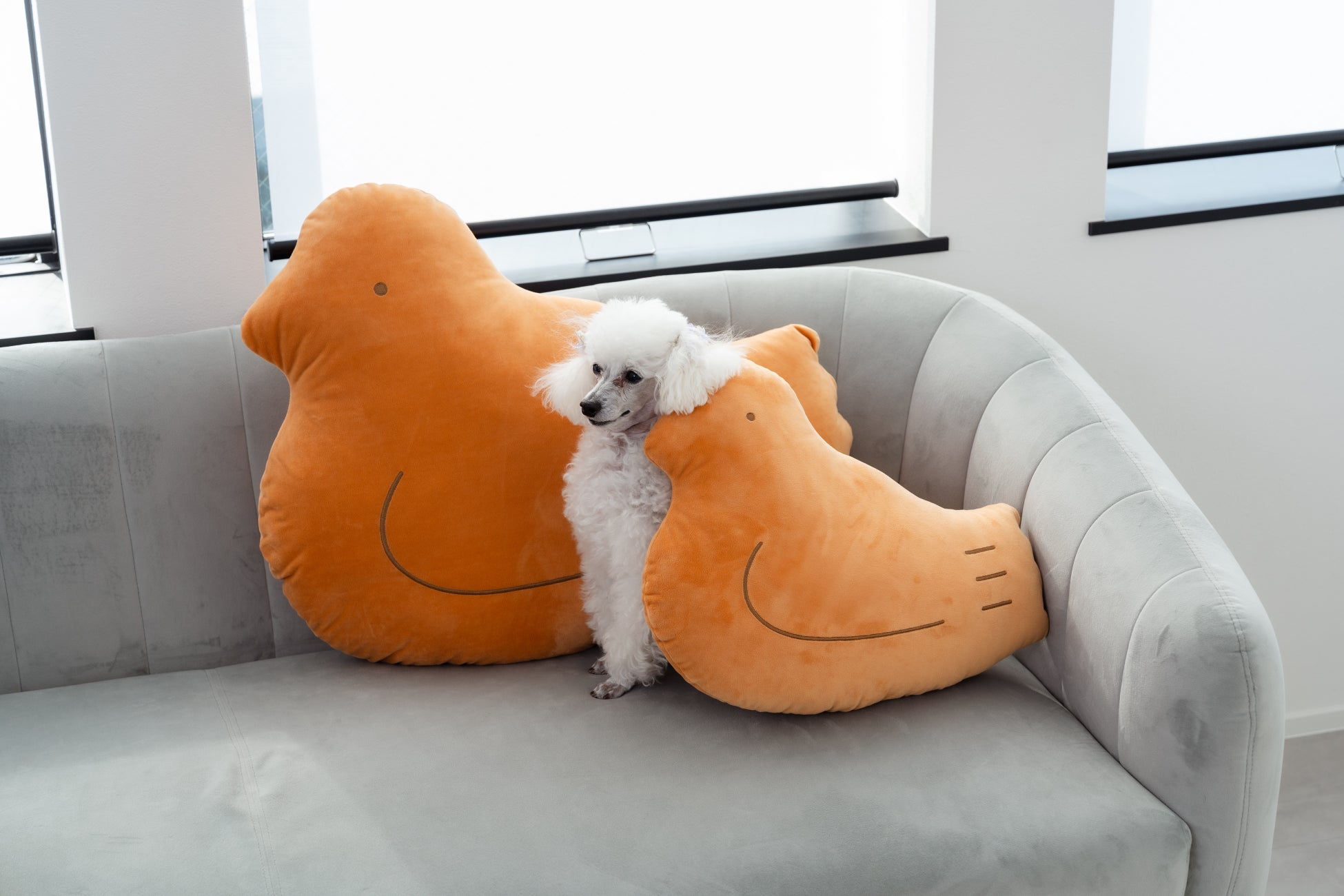 鳩サブレーの形をそのままクッションにした「鳩ッション」。お部屋に飾ったり、抱き枕にしたりしたくなる、かわいらしい見た目とふわふわの触り心地です。サイズは大・小の2種類をご用意いたしました。数量限定商品のため、抽選販売とさせていただきます。本商品は、期間内に豊島屋本店にてお受け取りいただく必要がございますので、ご注意くださいませ。