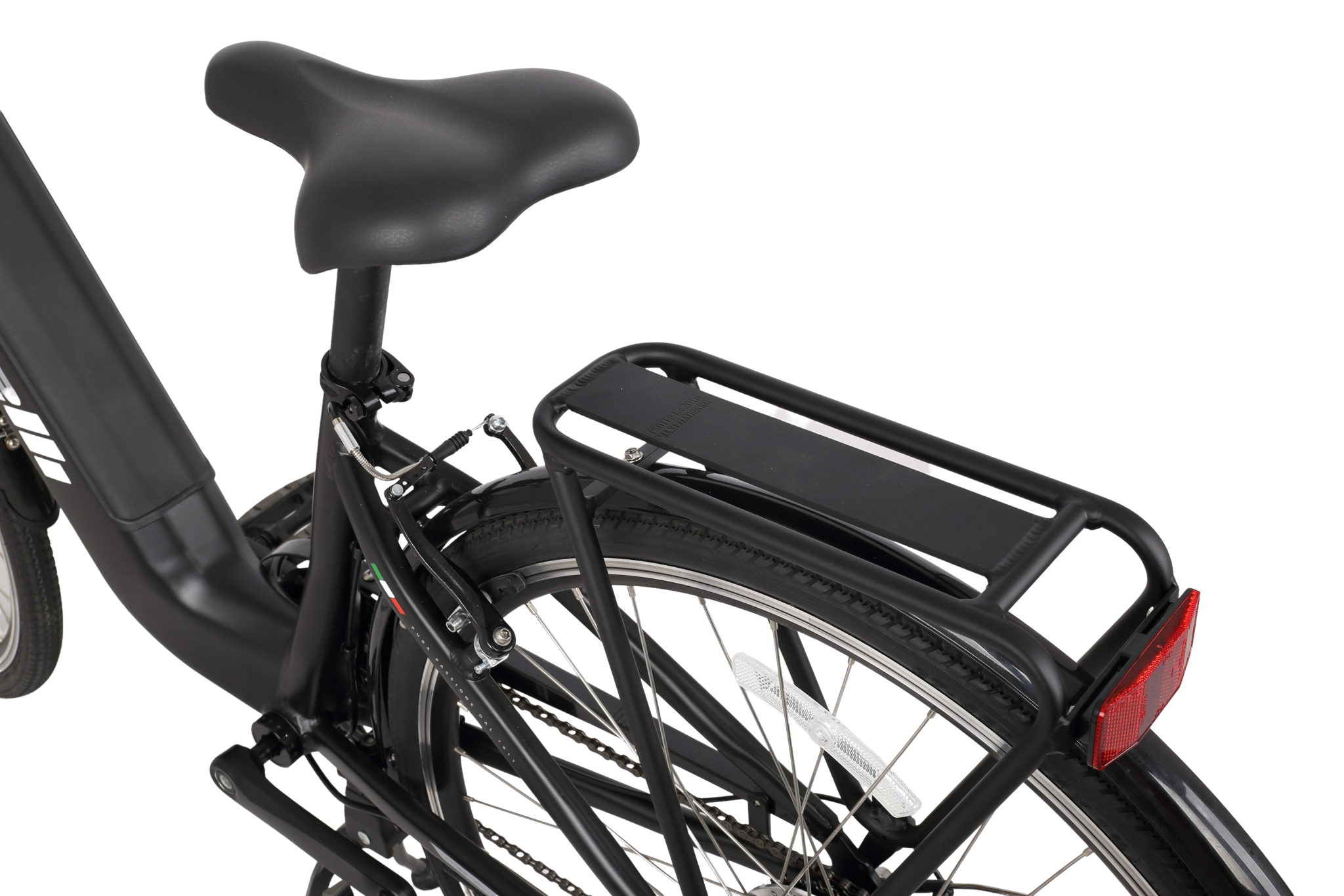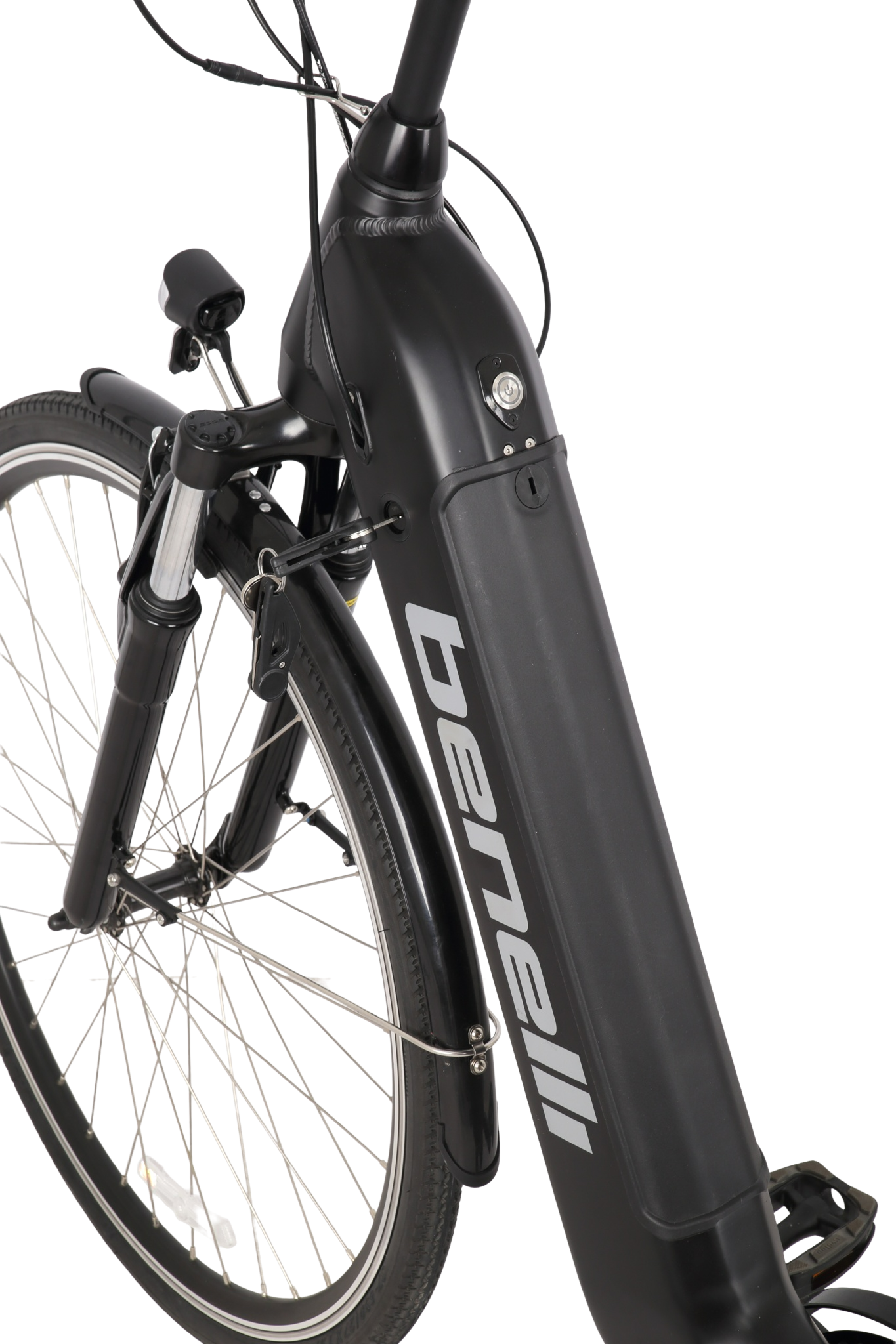 バッテリーをフレーム内に収納しスマートなシルエットを実現。デザインだけでなく盗難やいたずら防止にも寄与します。