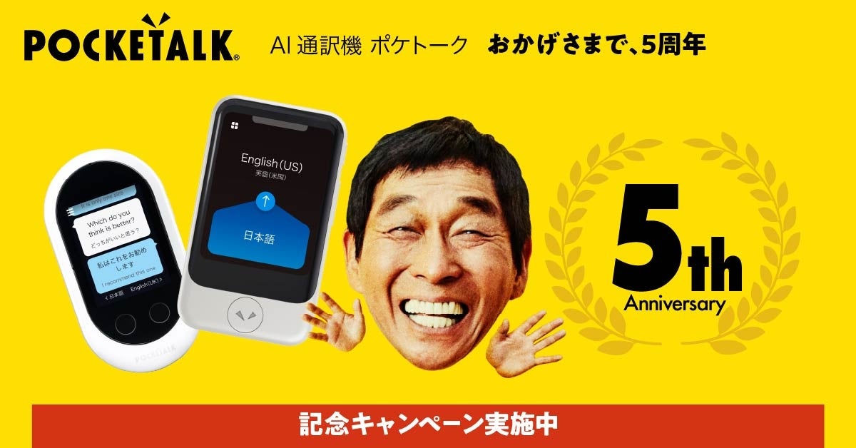 ポケトーク株式会社(本社:東京都港区、代表取締役社長:松田 憲幸)は、「ポケトーク」シリーズの販売開始から5周年を迎えることを記念して、キャンペーンを開催いたします。