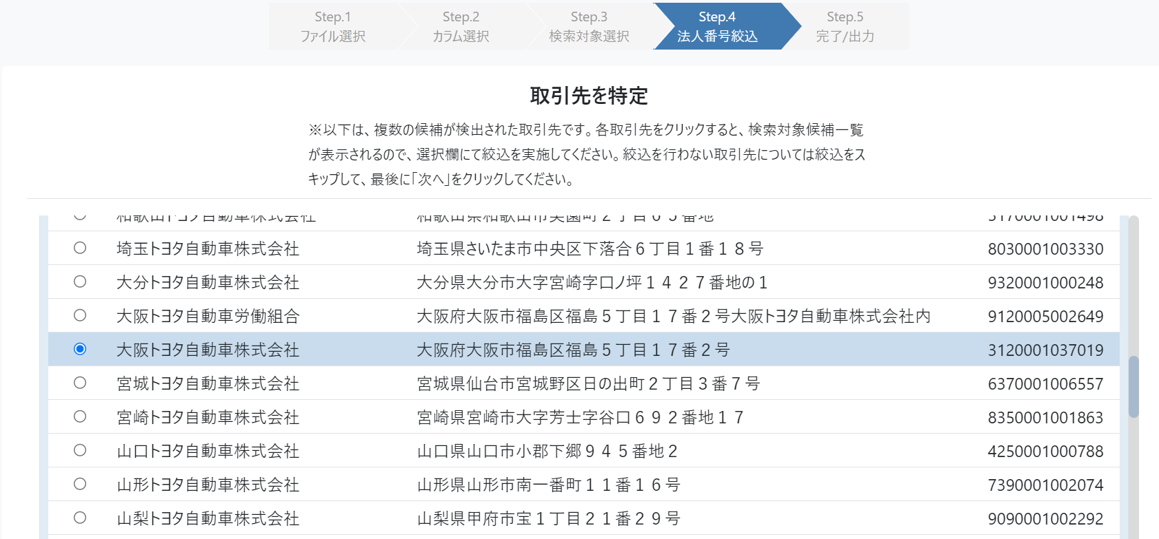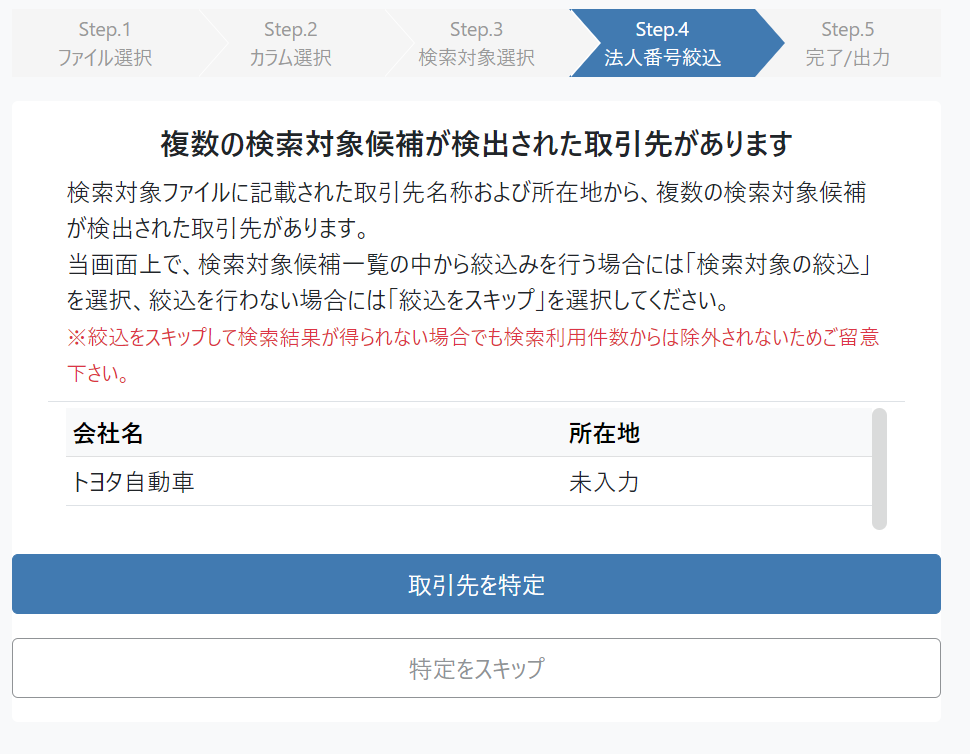 4. (対象候補が複数ある場合)取引先の特定・絞込み