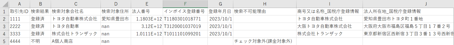 (国税庁のデータ):商号又は名称、法人所在地、インボイス登録番号、登録年月日、法人番号