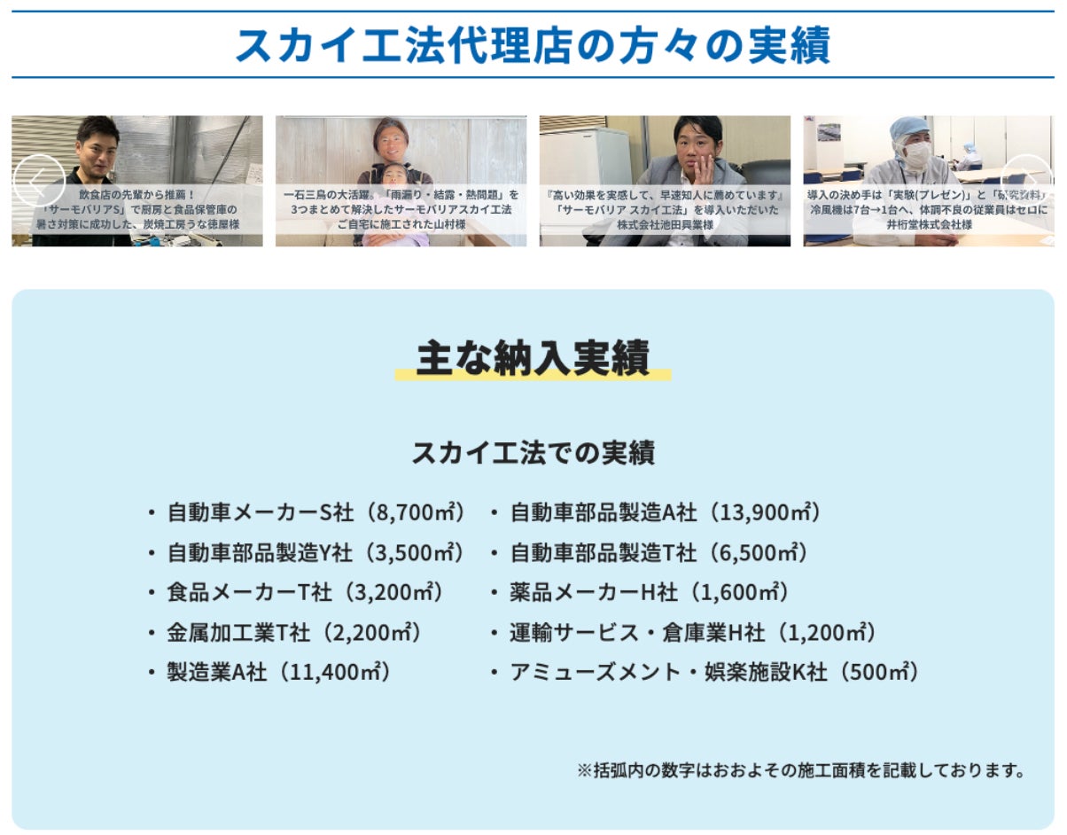 「サーモバリア スカイ工法」はさまざまな企業への導入実績があります