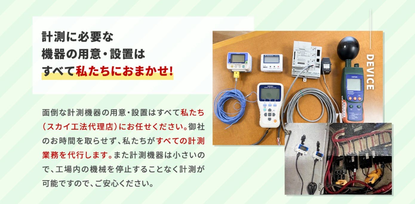 今なら導入特典付き!計測機器の設置、計測・データ化、報告書作成、すべて無料!