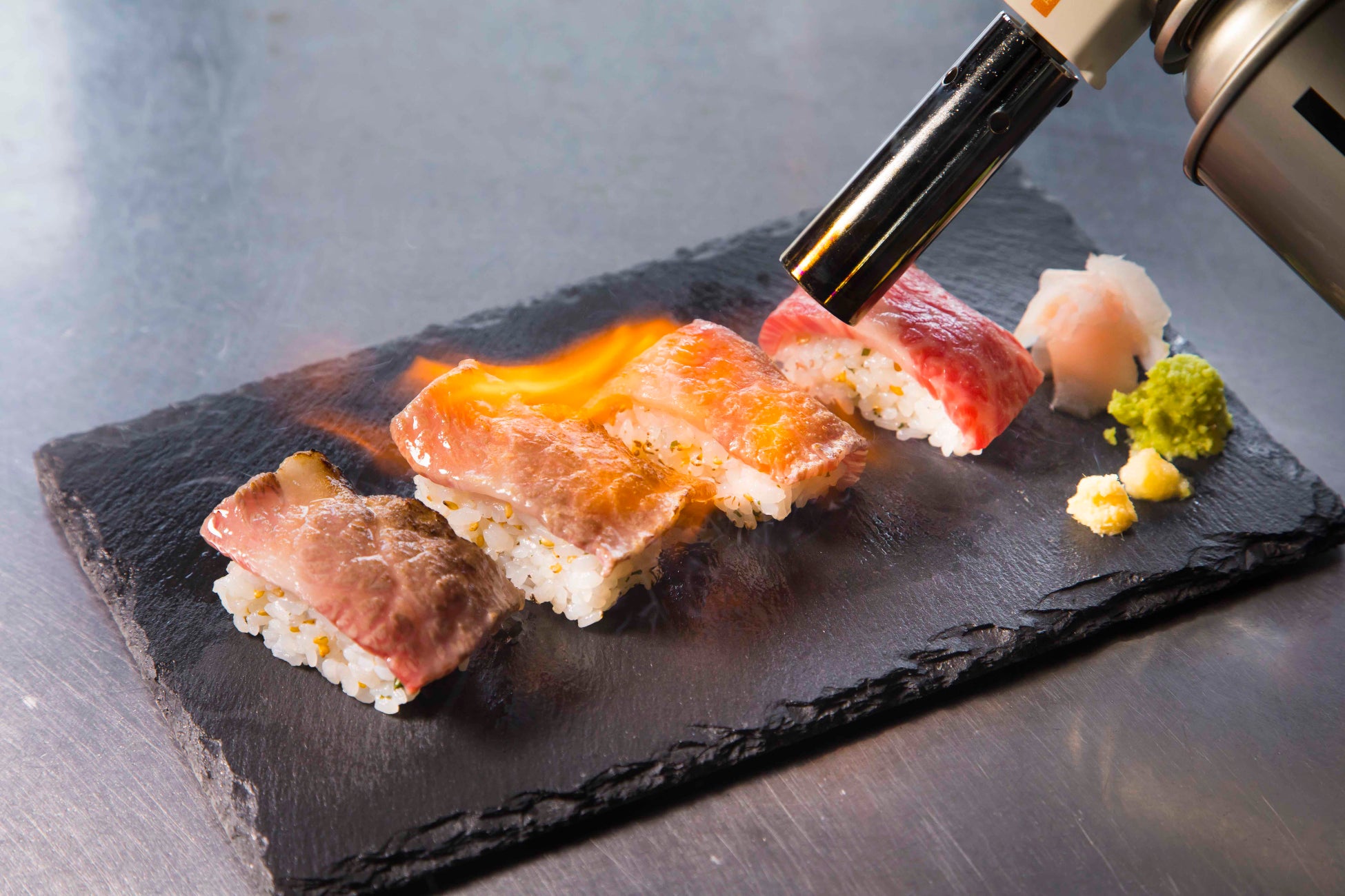 近江牛炙りカルビ肉寿司・近江牛炙り中トロ肉寿司
