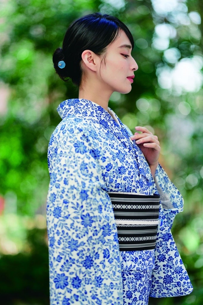 繊細な素材の良さを活かしたカラー使いと控えめな柄が洗練された雰囲気の浴衣。