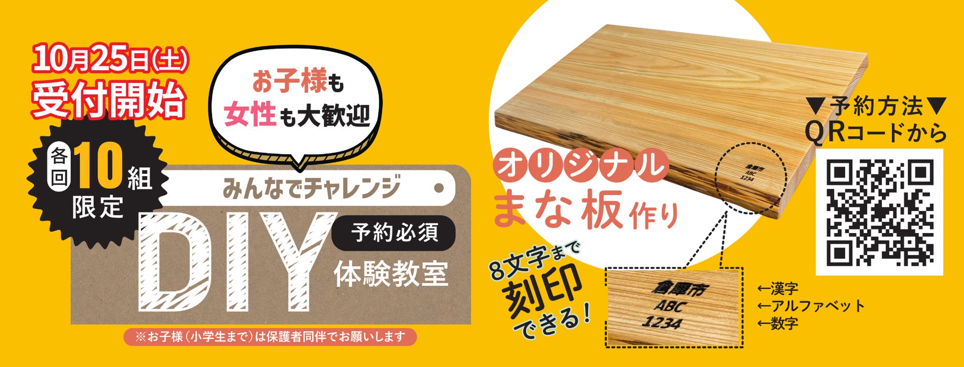 前回も大変好評だったイベント、お子様連れでご来場予定のお客様にもおすすめな催しとなっております。DIY教室のご予約方法は、QRコードからご登録いただけます。