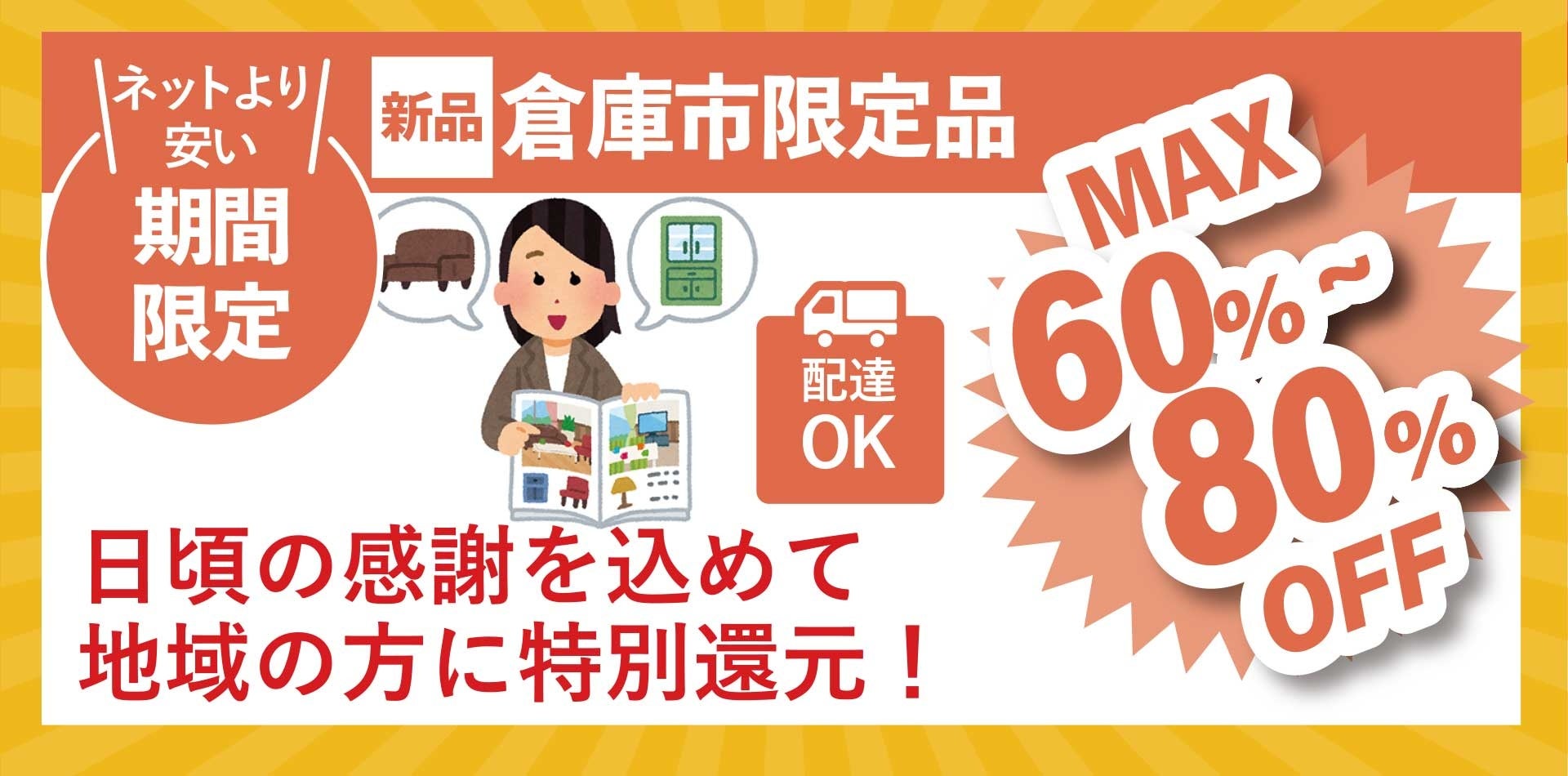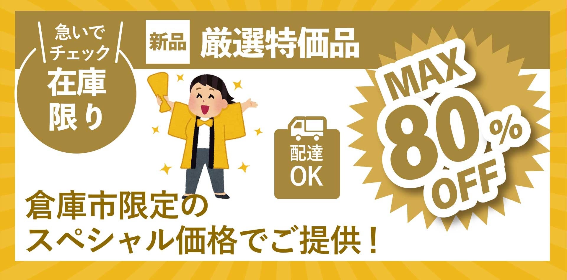 倉庫市限定で、人気商品などをスタッフが厳選しスペシャル価格でご提供します。
