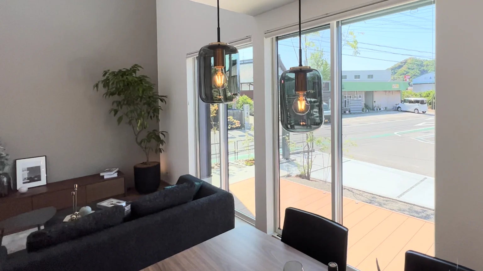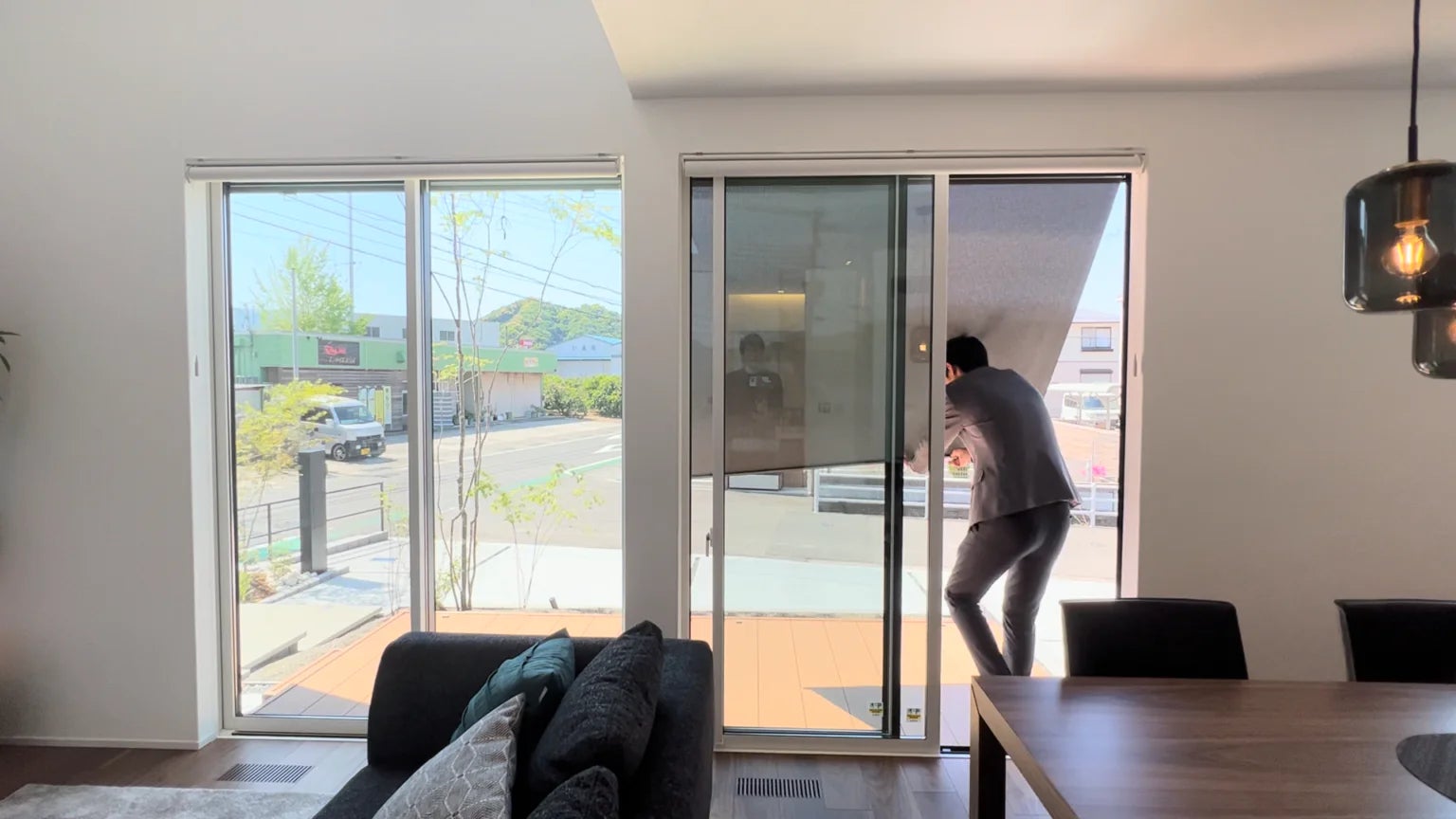 夏の日差しは遮り、冬の日差しは採り入れることで、快適・省エネに暮らす設計手法「パッシブデザイン」を採用。軒の出910mmという大きなフレームが真夏の日差しをカットします。また、大きなウッドデッキには、ロール式の大きなサンシェードを展開可能。冷房を最小限にしながら、家の中を快適に保ちます。