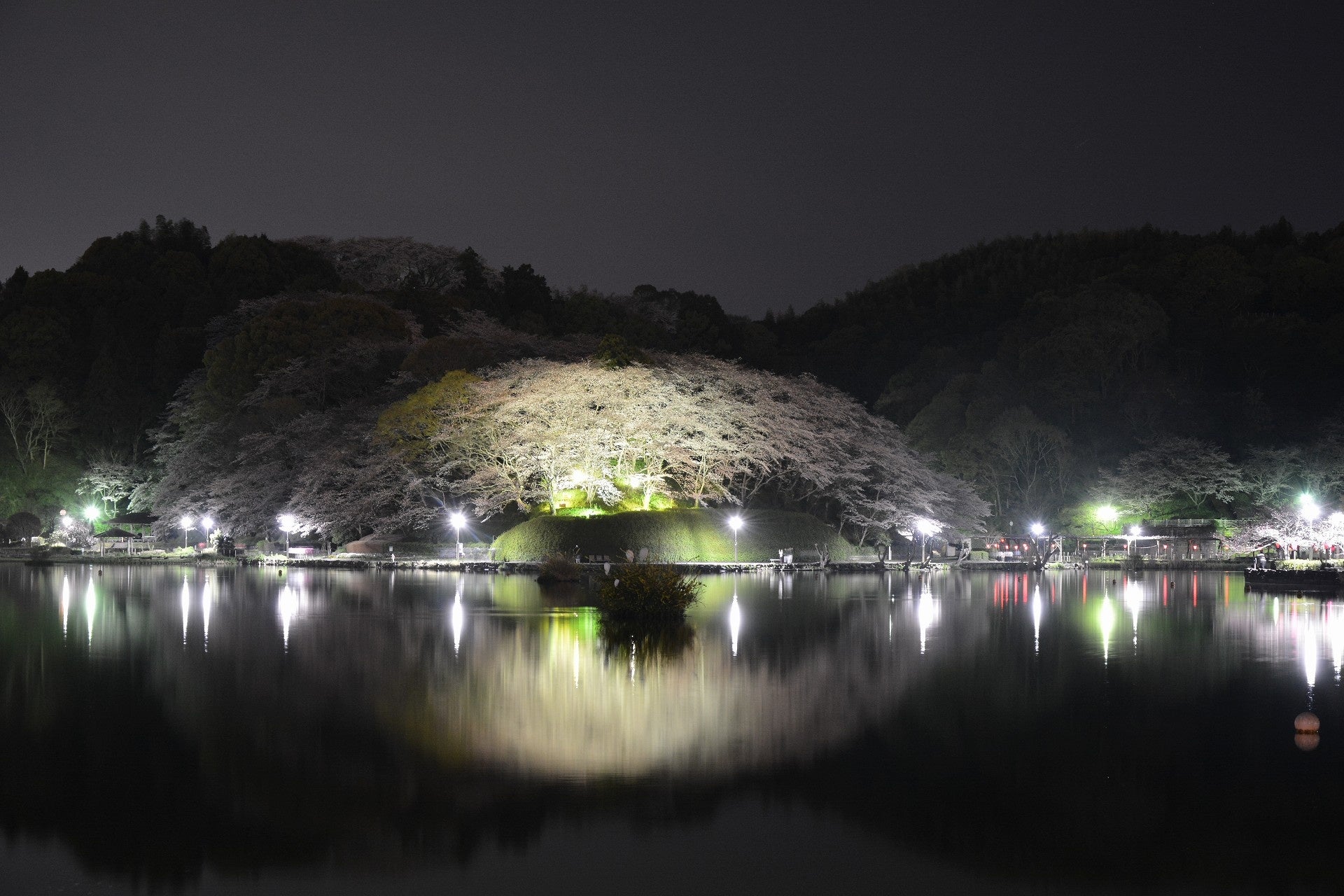 蓮華寺池公園が一年のうちで一番賑わう季節となり、「桜」が見ごろを迎えようとしています。この「桜」を来園者にさらに楽しんでもらうために、公園内「冒険の丘」斜面で“桜のライトアップ”を実施しています。夜空に浮かび上がる幻想的な「桜山」をお楽しみください。