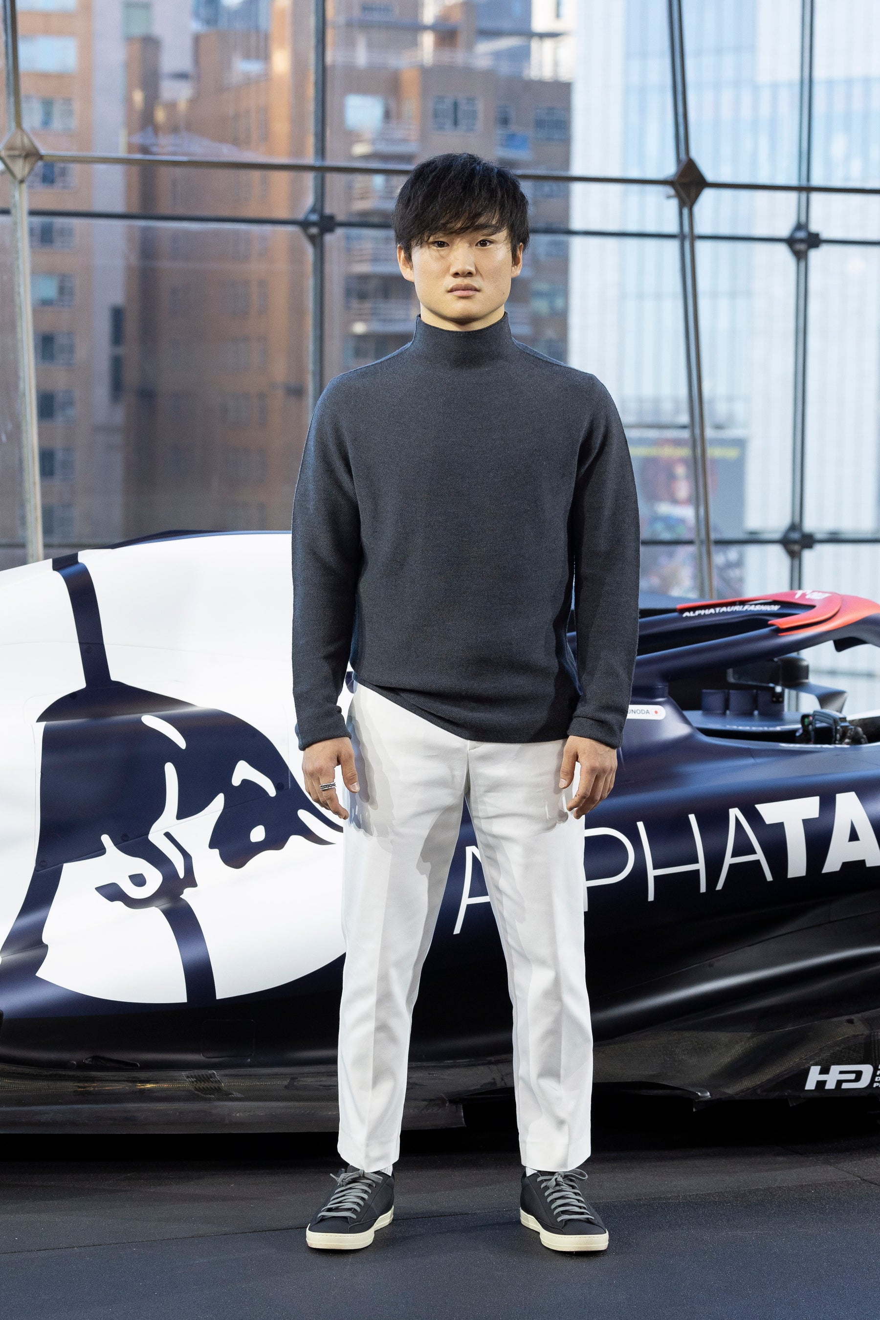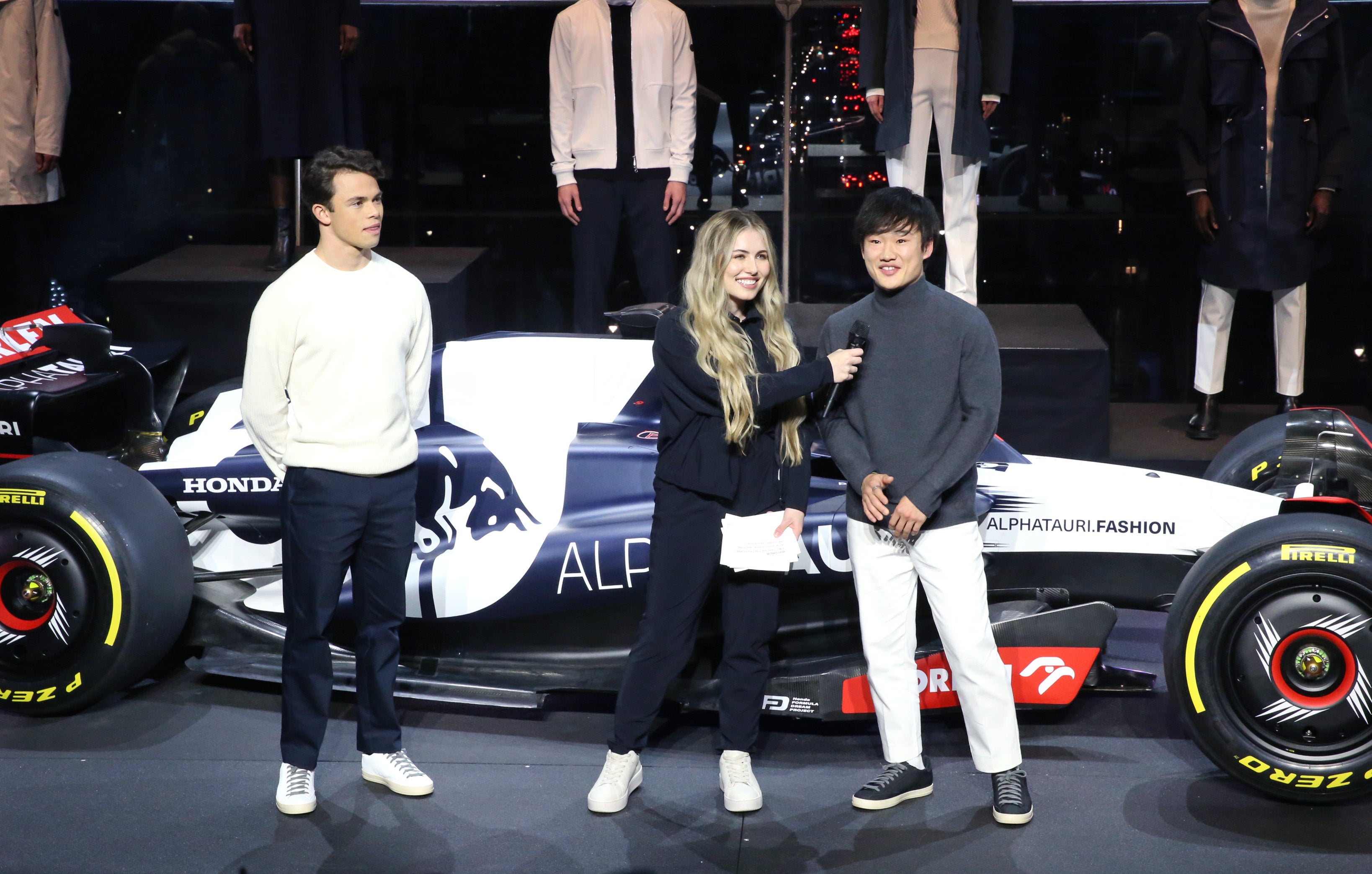 イベントの進行を担ったのは、ニッキー・テイラー。スクーデリア・アルファタウリF1チームが誇る2人のドライバー、角田裕毅とニック・デ・フリースも、アルファタウリ最新コレクションを装い、イベント後に行われたアフターショーパーティーに参加しました。