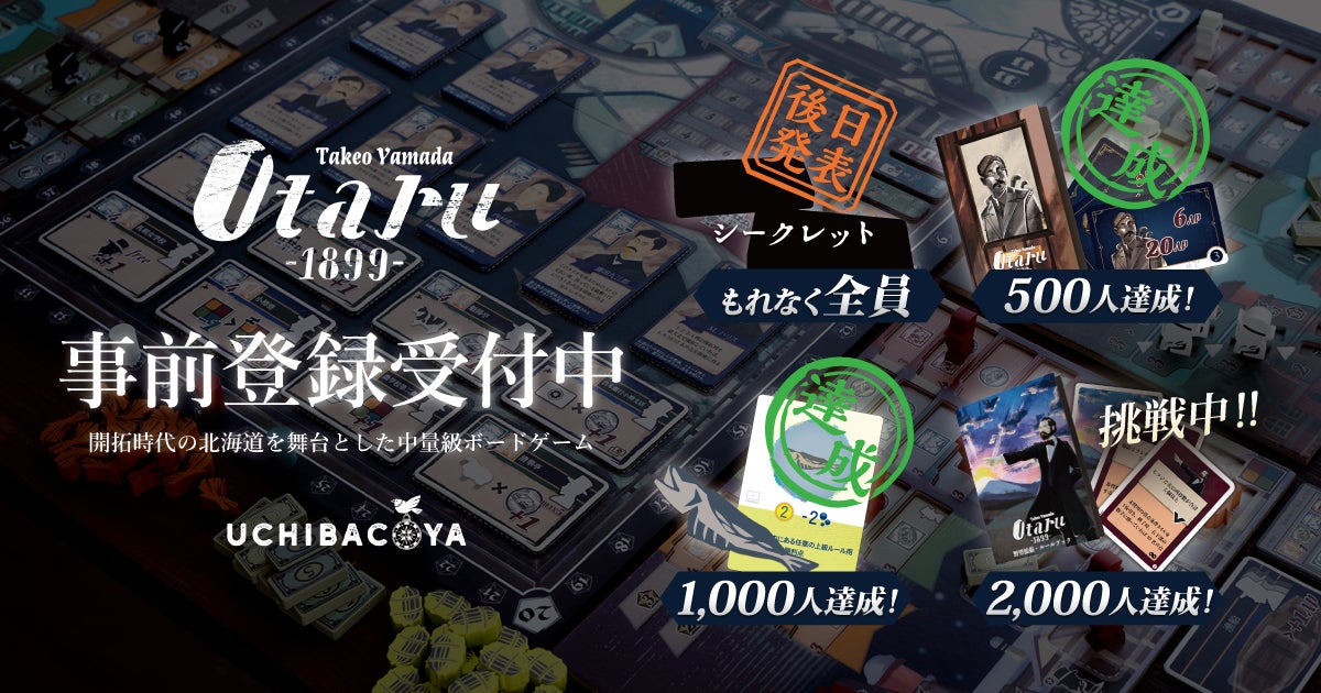 日本を代表するボードゲーム出版社「うちばこや」最新作 Otaru1899 キャンペーンの事前登録者数1,500人突破。X(旧Twitter)キャンペーン第二弾も本日開始、人気4作品のセールも実施中。