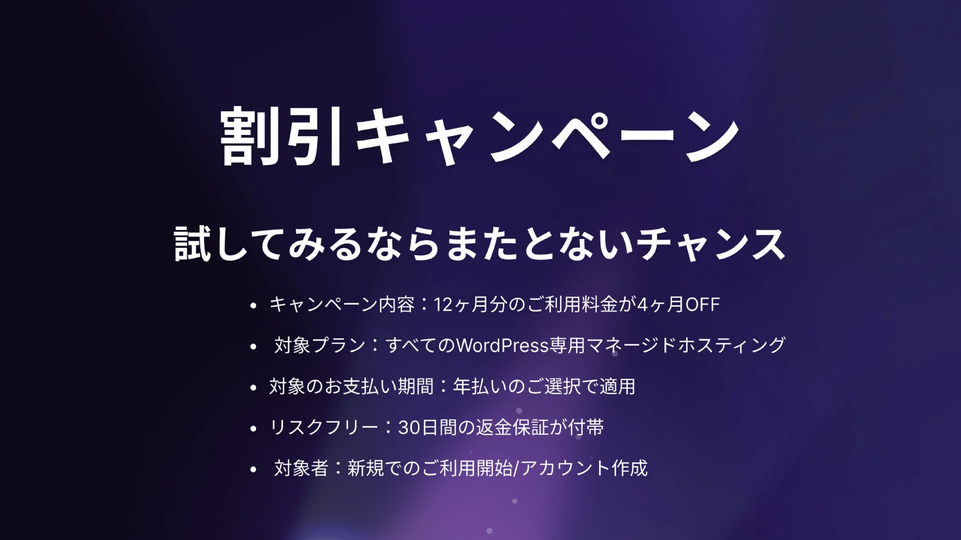 WordPress専用マネージドホスティングを利用開始するなら今がチャンス
