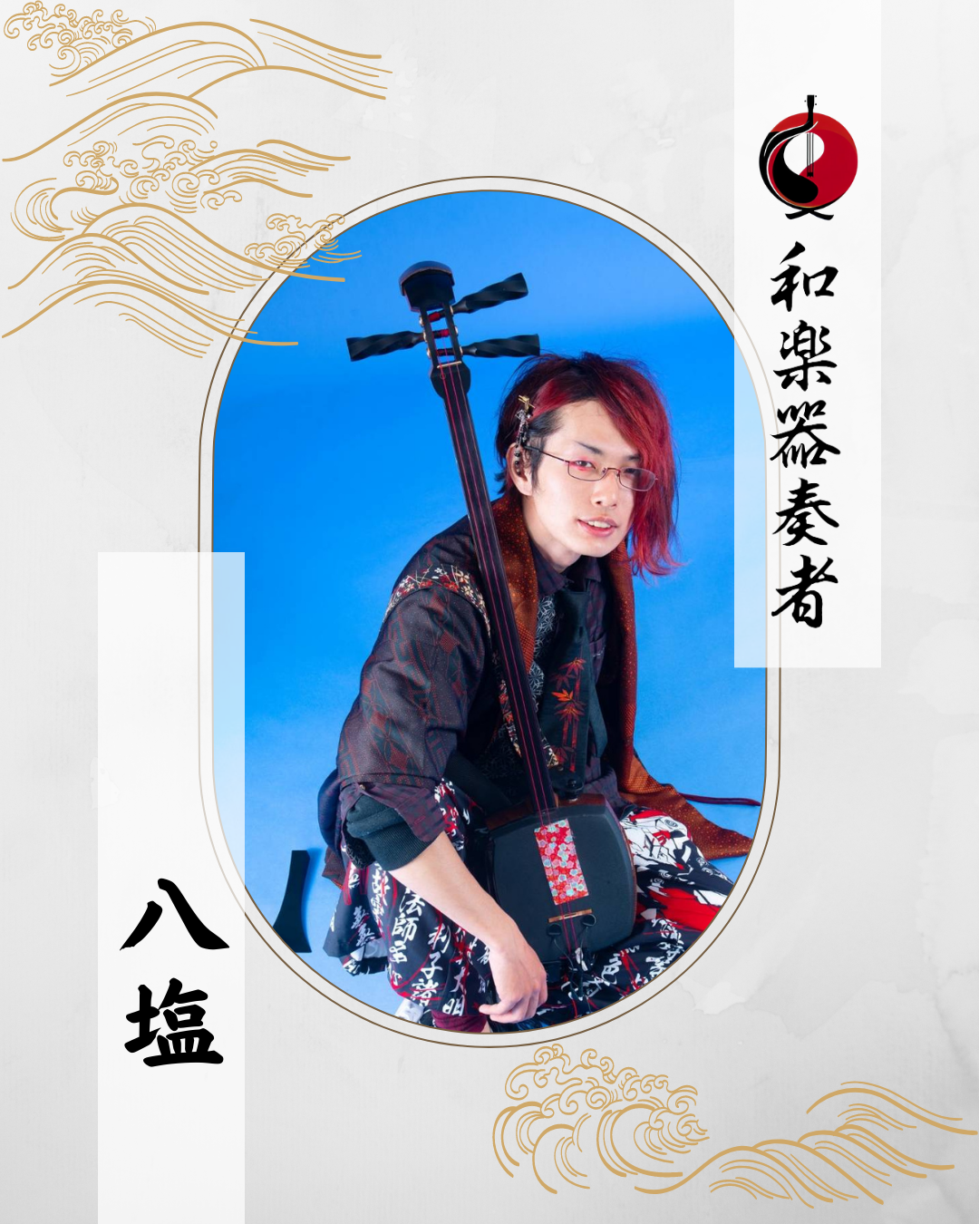 八塩の独特な外見も彼の魅力の一つです。彼は赤髪と地下足袋を身に着けた異色の姿で舞台に立ち、観客を惹きつけています。そのパフォーマンスは、音楽だけでなく視覚的な魅力も提供し、彼独自の世界観を演出しています。