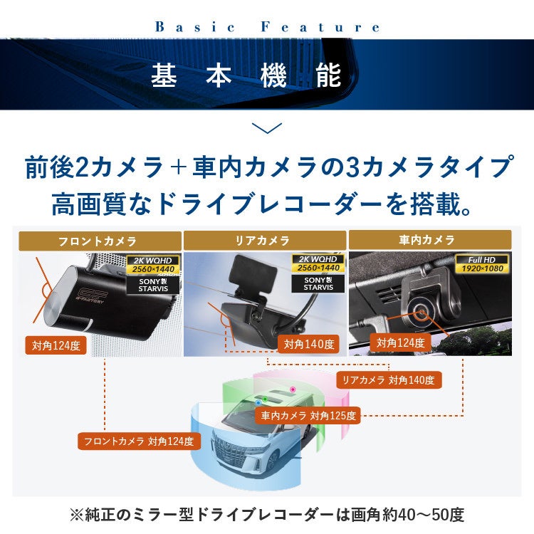・フロント/リアカメラ解像度:2K(2560×1440P)SONY STARVIS搭載