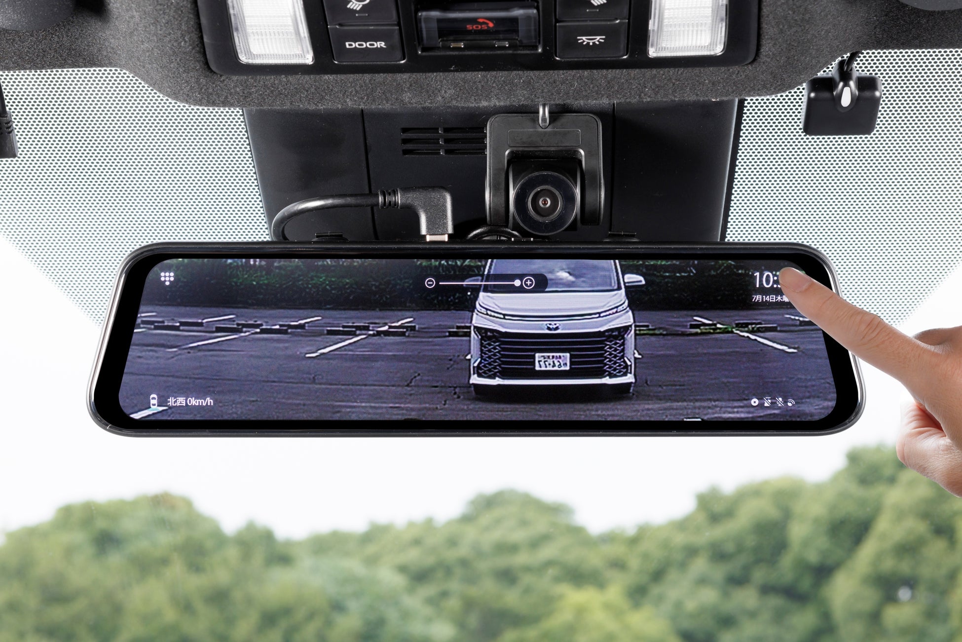 走行中は、後方確認のデジタルミラー+高画質ドラレコとして使用。デジタルミラーに慣れない方は、ミラー(鏡)状態のまま録画機能のみをONにすることも可能です。