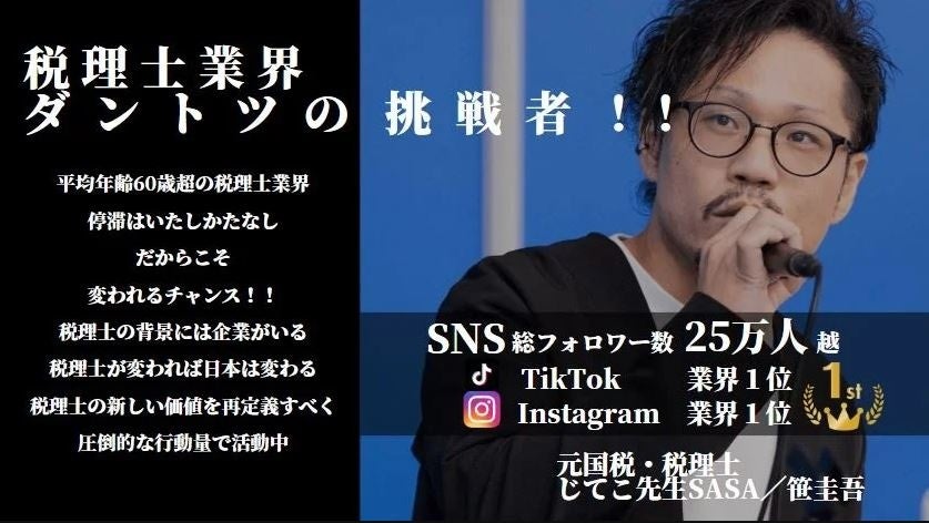 【2020年~2023年軌跡】 ・ 開業1年で110社の新規契約 ・ SNS総フォロワー25万人超え(TikTokとInstagramは業界日本一位) ・ 三度のクラファンが大成功(達成率300%超え、3回の総額300万円超を資金調達) ・ 「日本ビジネス書新人賞」大賞受賞 「あの~~~、1円でも多くお金を残すには どうしたらいいですか?」7月7日発売開始 https://amzn.to/3WBYC8I※「人は話し方が9割」著者永松茂久氏、TSUTAYA、すばる舎主催の新人発掘コンテスト ・ TikTok公式インフルエンサーコミュニティのオーガナイザーに就任・ 24時間1万人メタバース活用EXPO主催、見事に1万人達成!! ・ テレビ、雑誌、新聞等メディア多数出演 ・ セミナー実績 (大阪市、日本M&Aセンター、一般社団法人行政書士の学校、NPO法人ひょうご安心リフォーム推進委員会、 会計事務所博覧会2022、サンワード貿易、夙川物産、一般社団法人RPA研究会など多数)