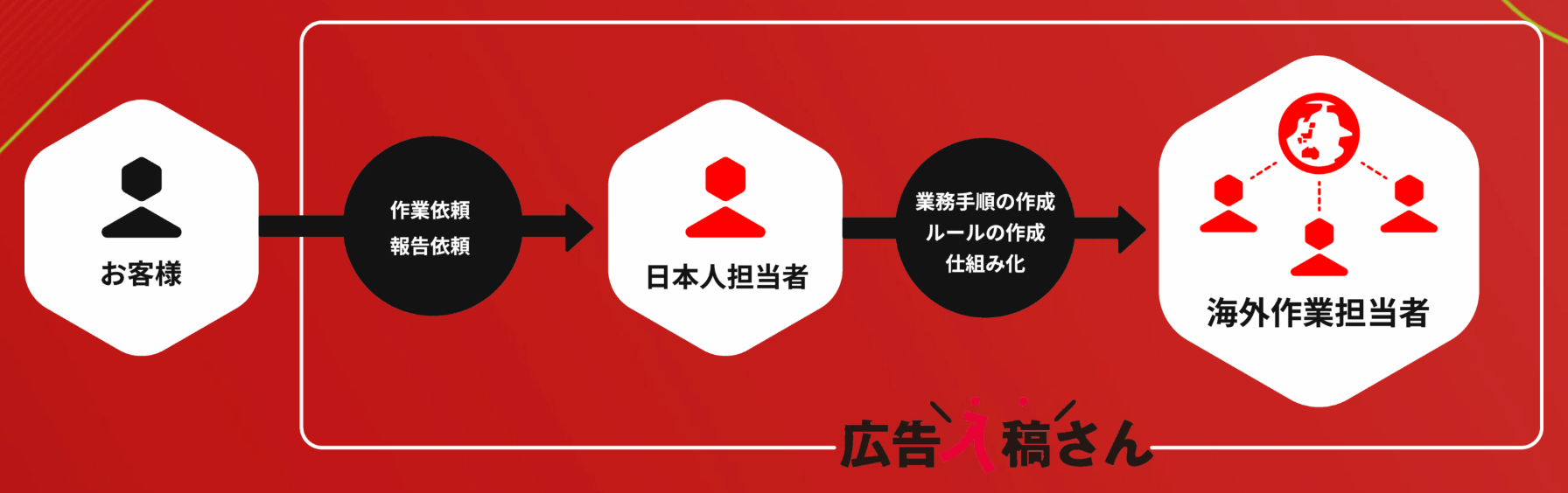 本来、売上拡大に向けた戦略立案やクリエイティブ改善といった、上流工程にリソースを割くべき状況でありながら、深刻な人材不足や人件費の高騰も相まって、膨大な実務をこなすだけで一日が終始してしまう現状があります。さらに、業界の競争激化による収益性の低下も重なり、作業量に対して利益が確保しにくいという構造的な課題も深刻化しています。こうした現場の閉塞感や経営課題を解決に導くために誕生したのが、次世代型BPO「広告入稿さん」です。