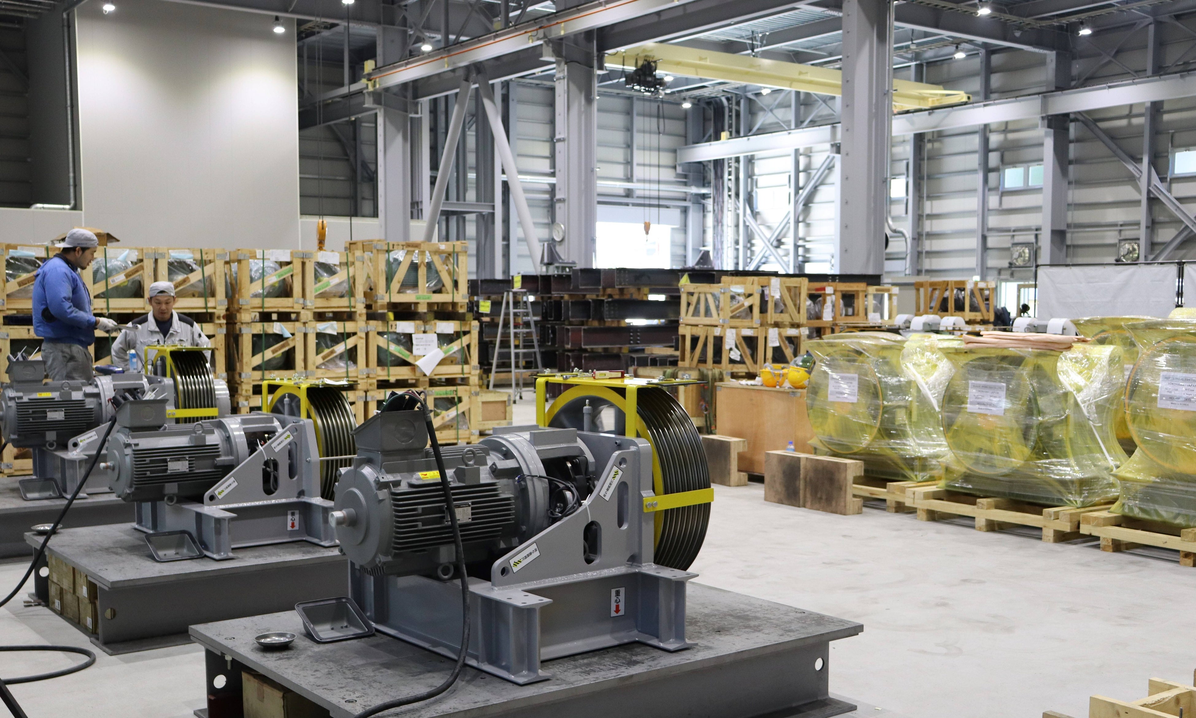 同センターは、製造工程の一部を移転して、生産能力の向上を図るとともに、生産増に対応するために品質管理業務の集約・機能強化を 【巻上機検査】