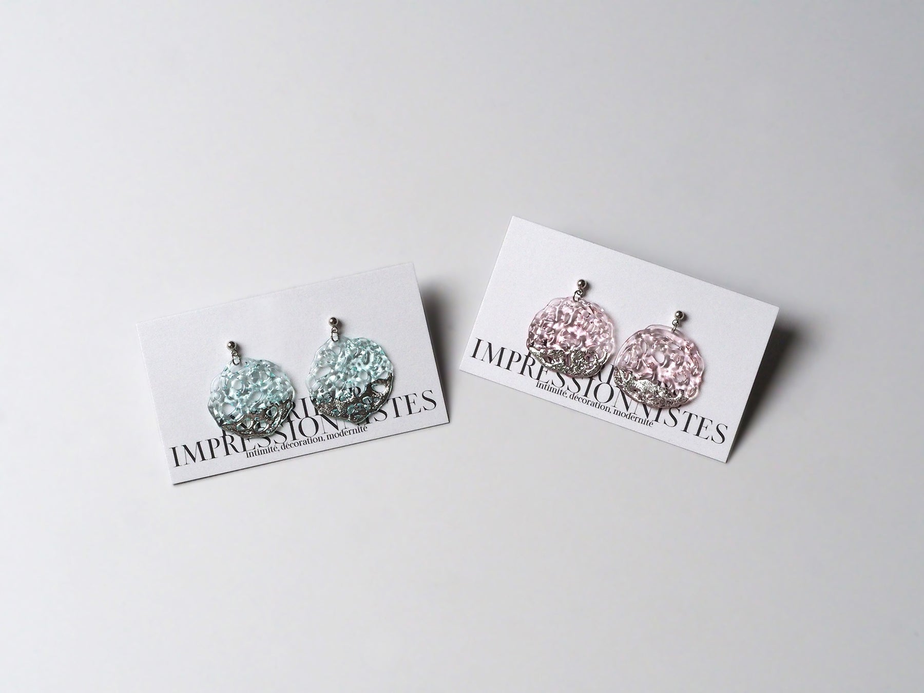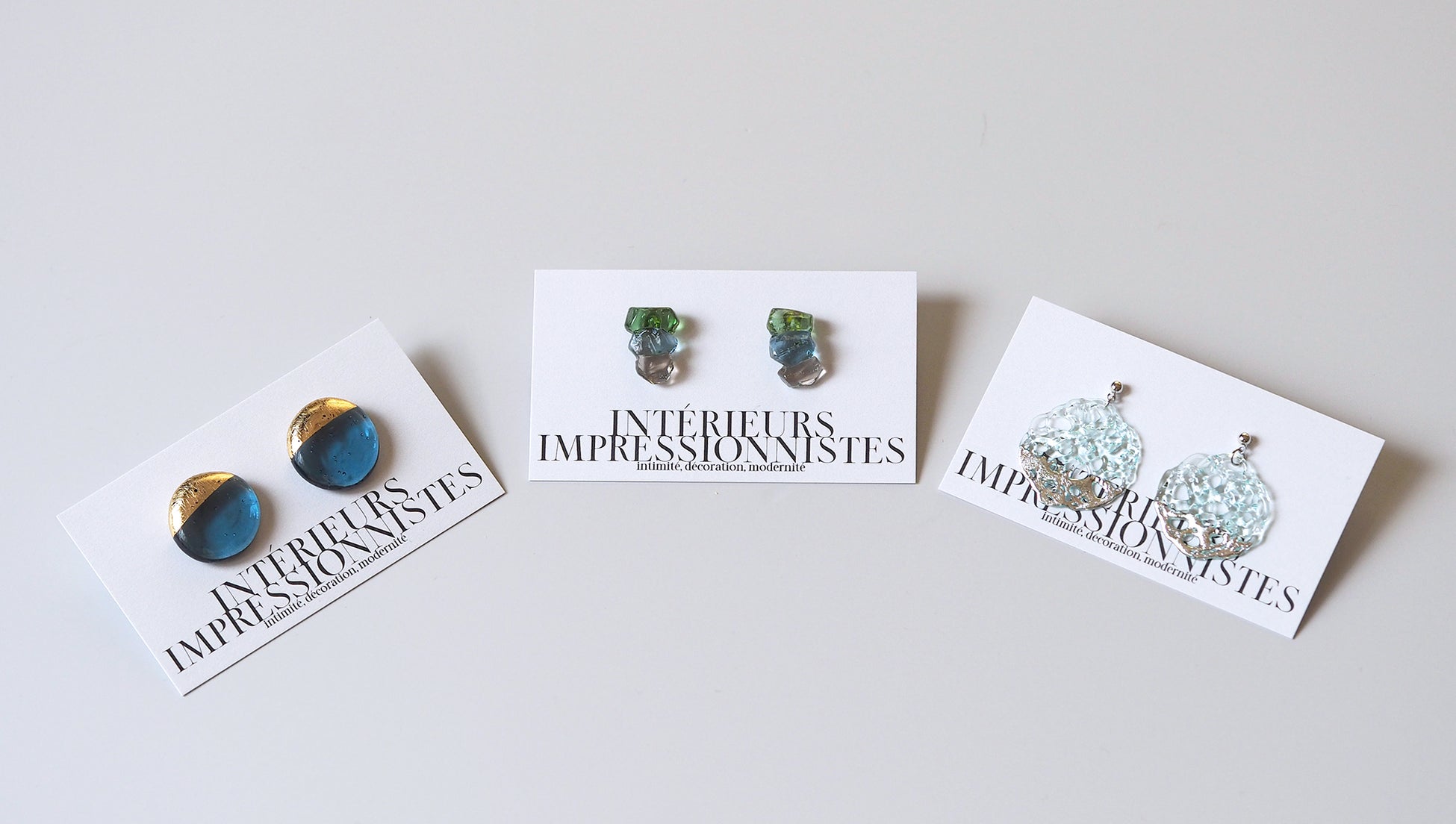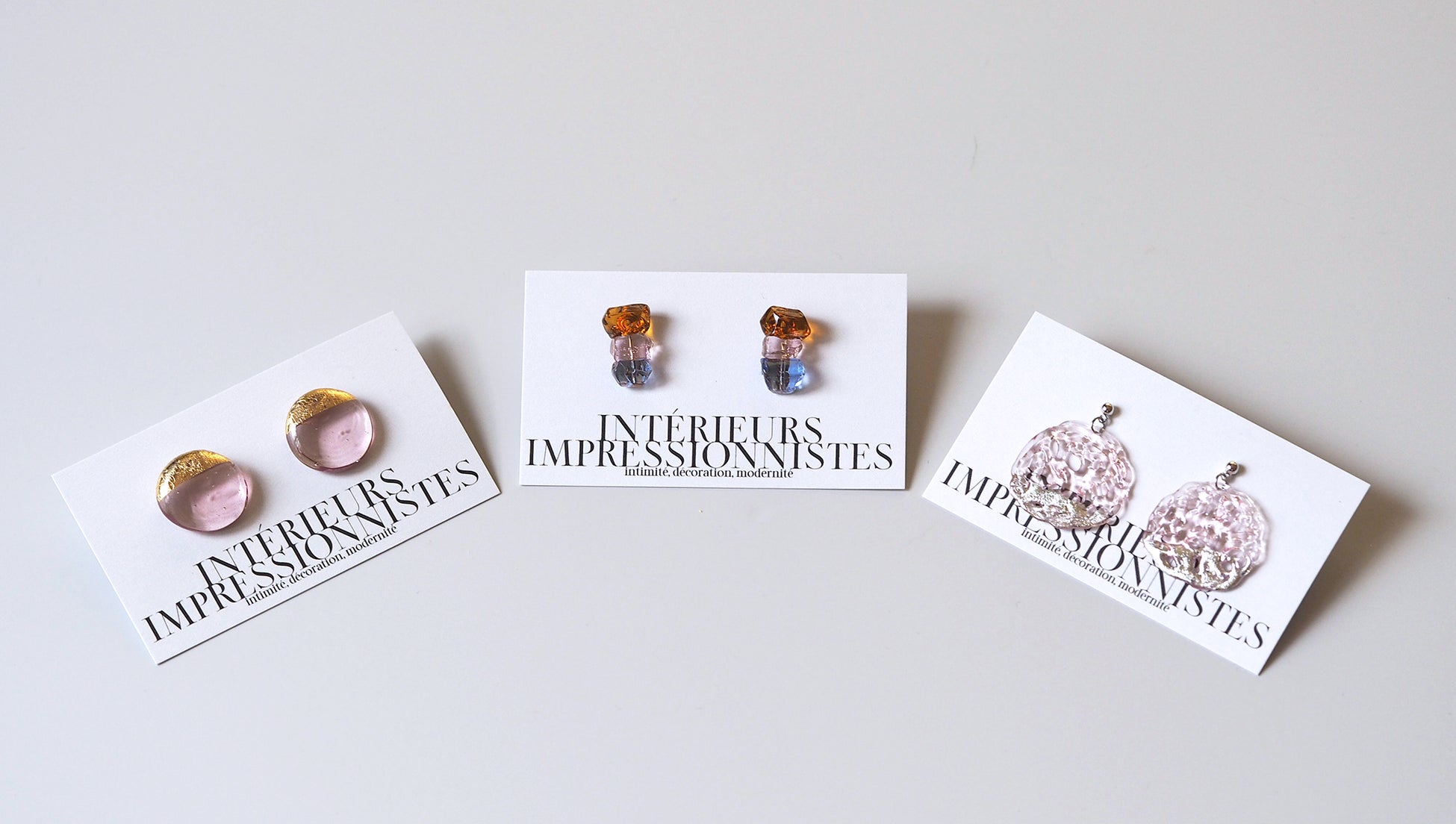 印象派の巨匠たちが描いた室内の光と色彩に着想を得た、リサイクルプラスチックの透明感と光を纏わせたアクセサリー。