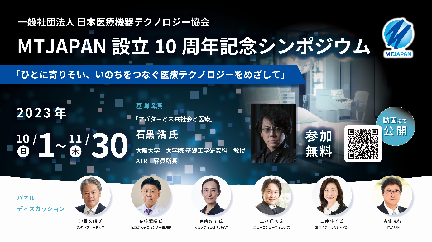 本シンポジウムでは、MTJAPAN会員企業はもちろん、将来を担う若人や、医療機器産業に参入を目指す方々に、医療機器の医療貢献や医療機器テクノロジーの将来像などをお伝えします。