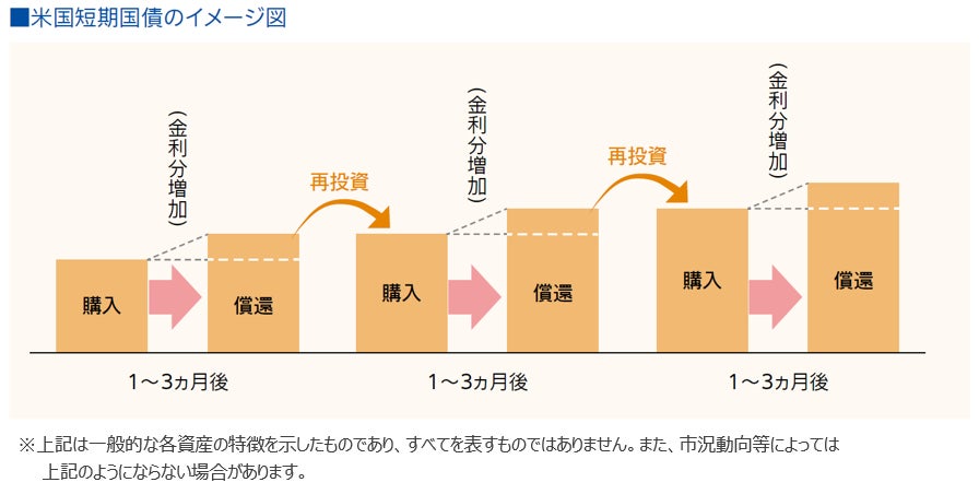 短期間で再投資ができるため、金利上昇局面では満期を迎えた資金をより高い利回りの新しい債券に投資が可能です。