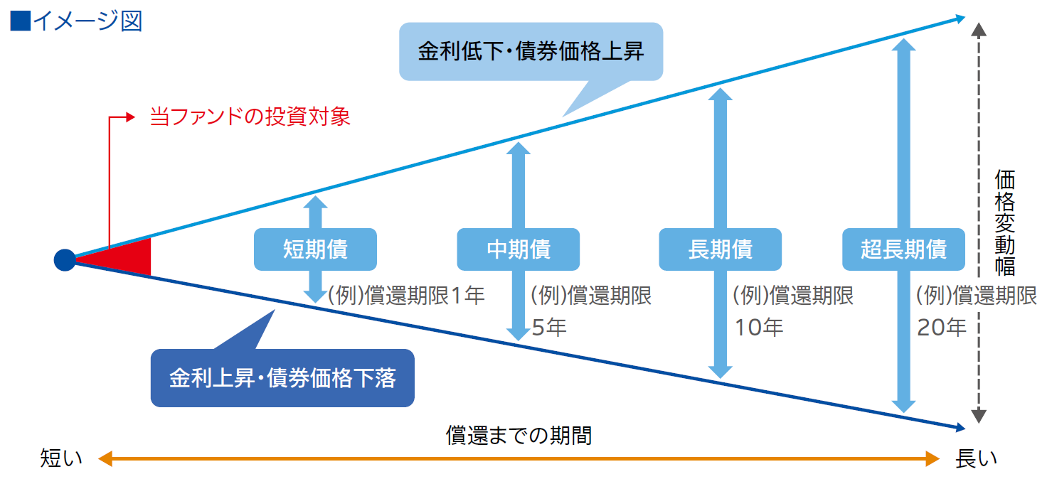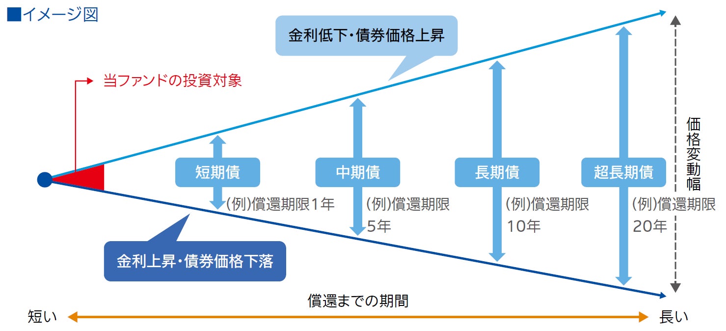 一方、債券投資において、金利上昇により債券の価格は下落する傾向があるため、将来の金利の動向が不透明な環境下において、投資家の皆さまの中には「債券には投資しにくい」とお考えの方もいらっしゃいます。そこで、当社が着目したのが金利変動の影響を受けにくい特徴を持つ「短期」の債券です。