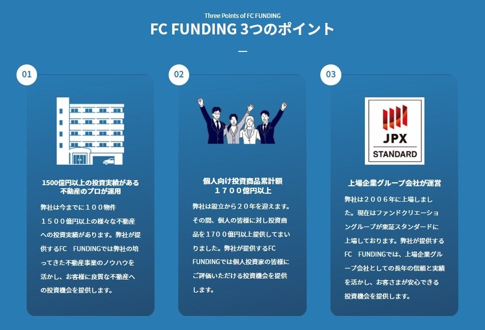 また、当社グループではこれまで、証券会社等を通じた一般投資家向けの商品、機関投資家や富裕層向けの商品を開発、販売してまいりましたが、「FC FUNDING」の開始により、自社のウェブサービスを活用して、一般投資家へ直接商品を提供することとなりました。投資家層の拡大を活用して、新たな事業展開、新商品の開発を加速してまいります。