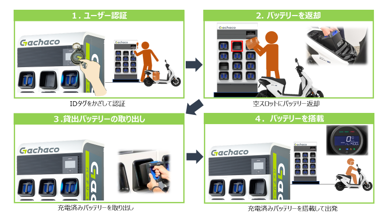 ※Gachacoステーション:電動バイクのバッテリーを、街中で自由に交換できるステーション
