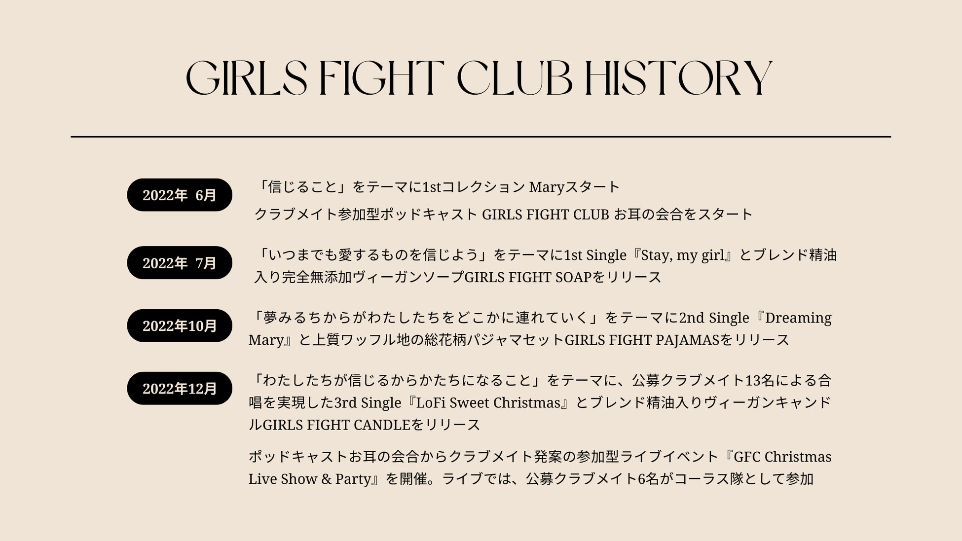 2022年、ガーリッシュを楽しむ全ての人を応援するクラブ・ブランド ”GIRLS FIGHT CLUB” を設立。