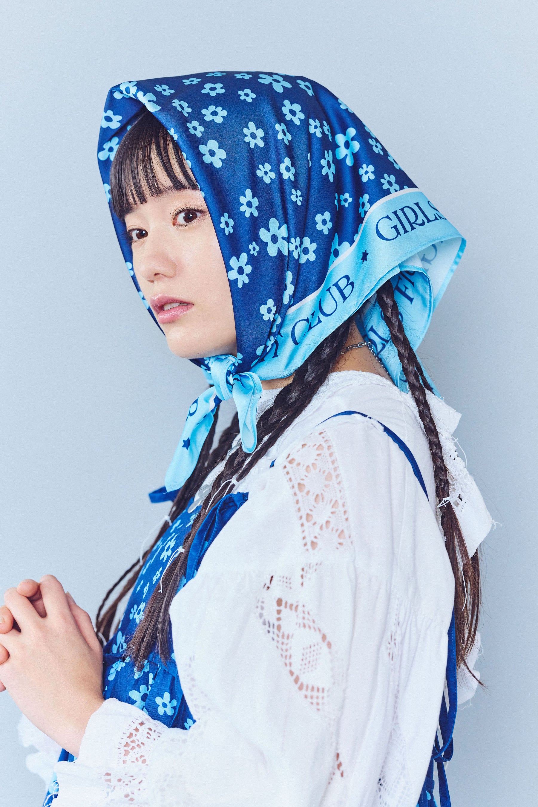 「GIRLS FIGHT SOUVENIR SET」二つ目のアイテムは、Eveのシンボルである青い花柄を大きくプリントした”Eve Souvenir Scarf”。Eveの花柄をあしらった大判スカーフは、ファッションとしてだけでなく、工夫次第で色々な使い方が可能。頭に巻けば日差しを避け、首に巻けば寒さを和らげられる便利なアイテム。ポリエステル素材でカバンに潜ませてもシワがつかず、つるつるとした気持ちいい肌触りです。