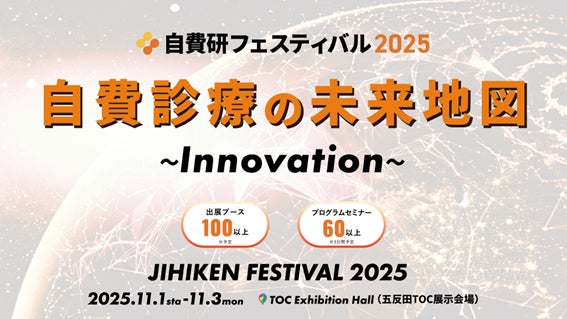 自費診療業界最大級イベント『自費研フェスティバル2025』を2025年11月1日(土)・2日(日)・3日(月・祝)の3日間、東京・五反田TOCビルにて開催いたします。昨年に引き続き、業界トップランナーによる講演プログラムや特別企画コーナーなど、多彩なコンテンツを予定しています。