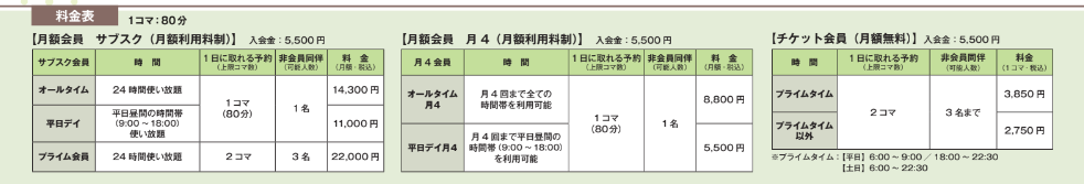 社員の方々の息抜きや趣味の充実、また、ご一緒に利用が可能なのでコミュニケーションツールの一つとしてご活用ください。金額等は対象人数によって変化いたします、詳しくはお問い合わせください。