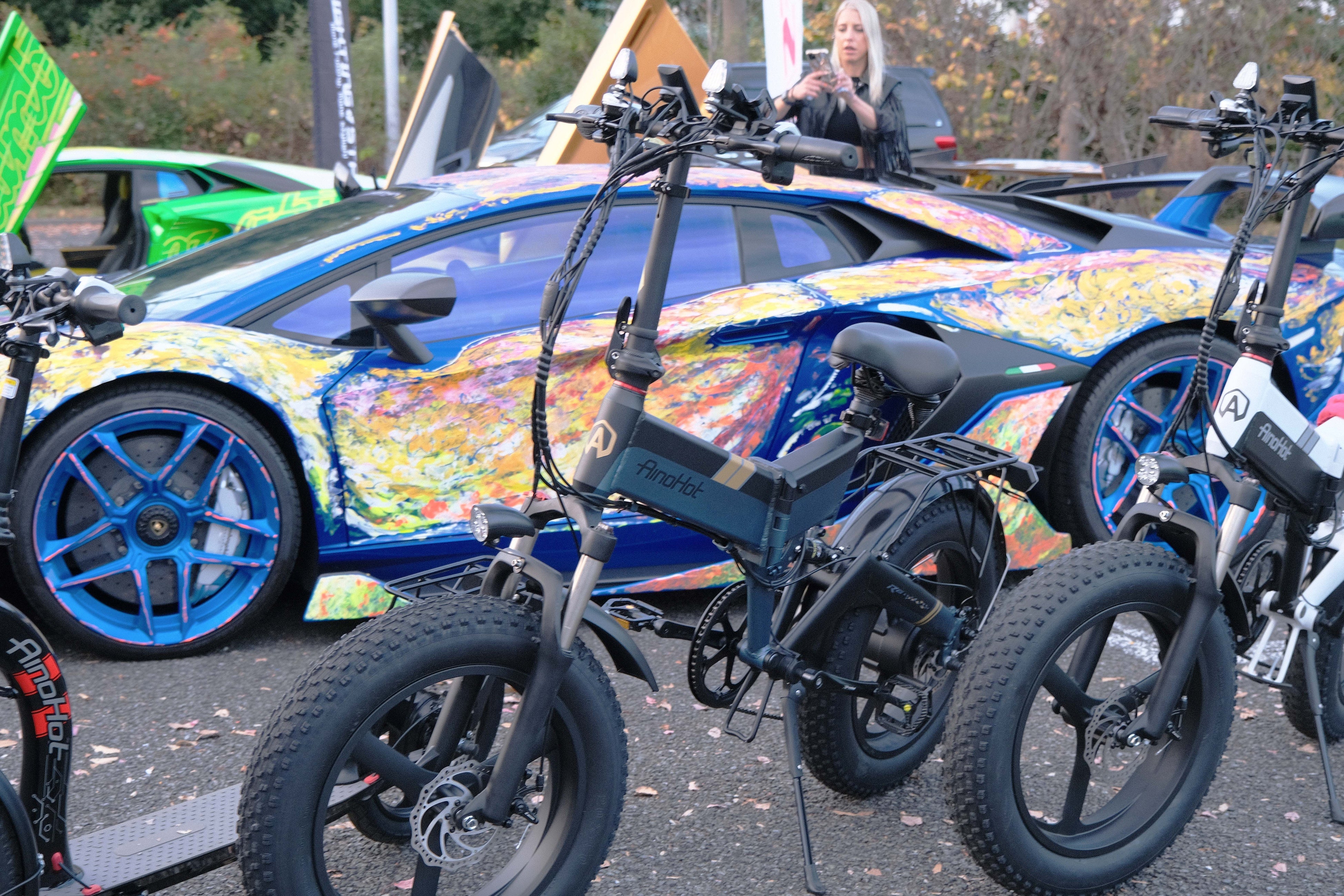 ならべていた高性能なe-bikeは豪華な車前にもまけないでしょう。