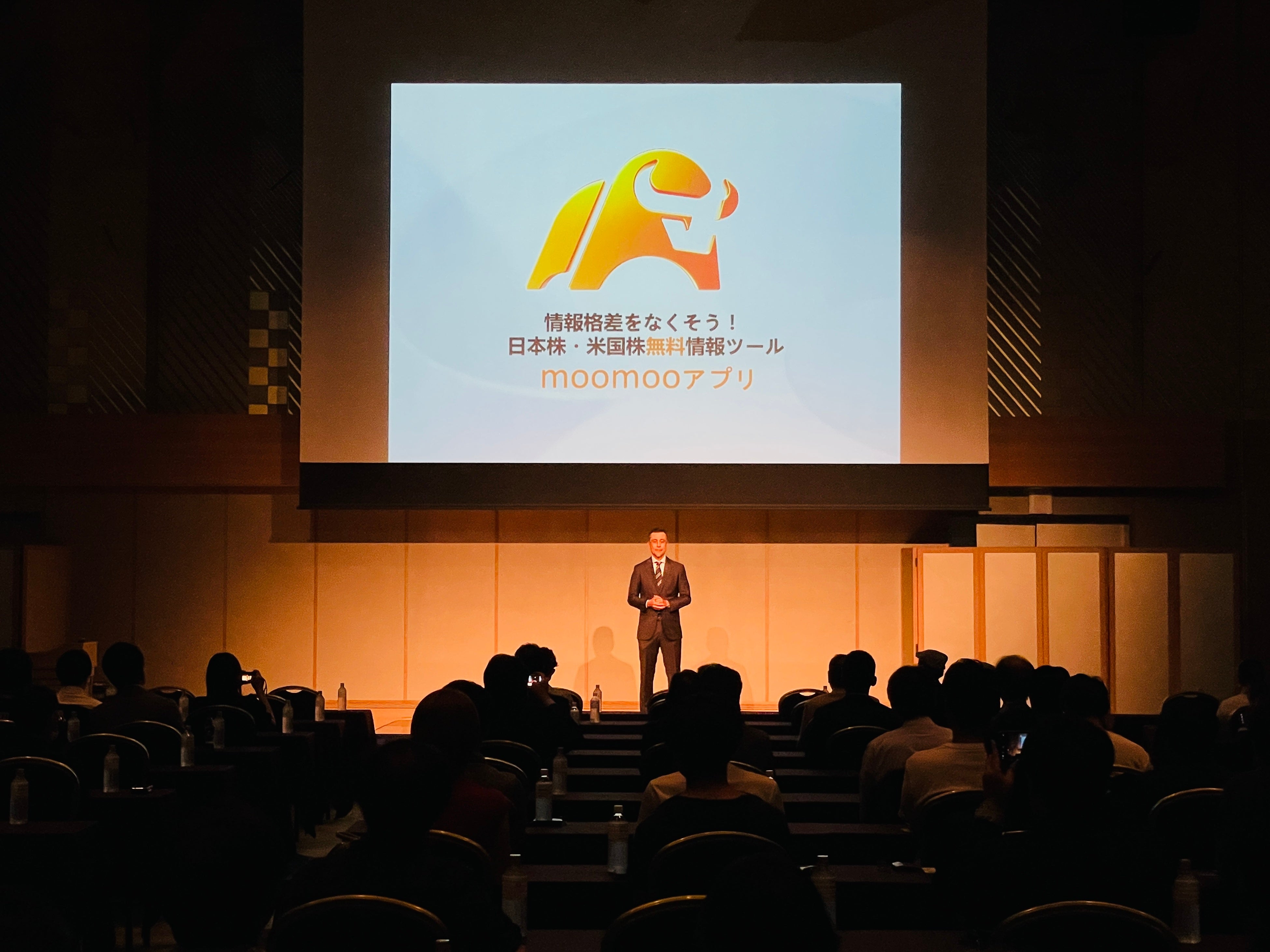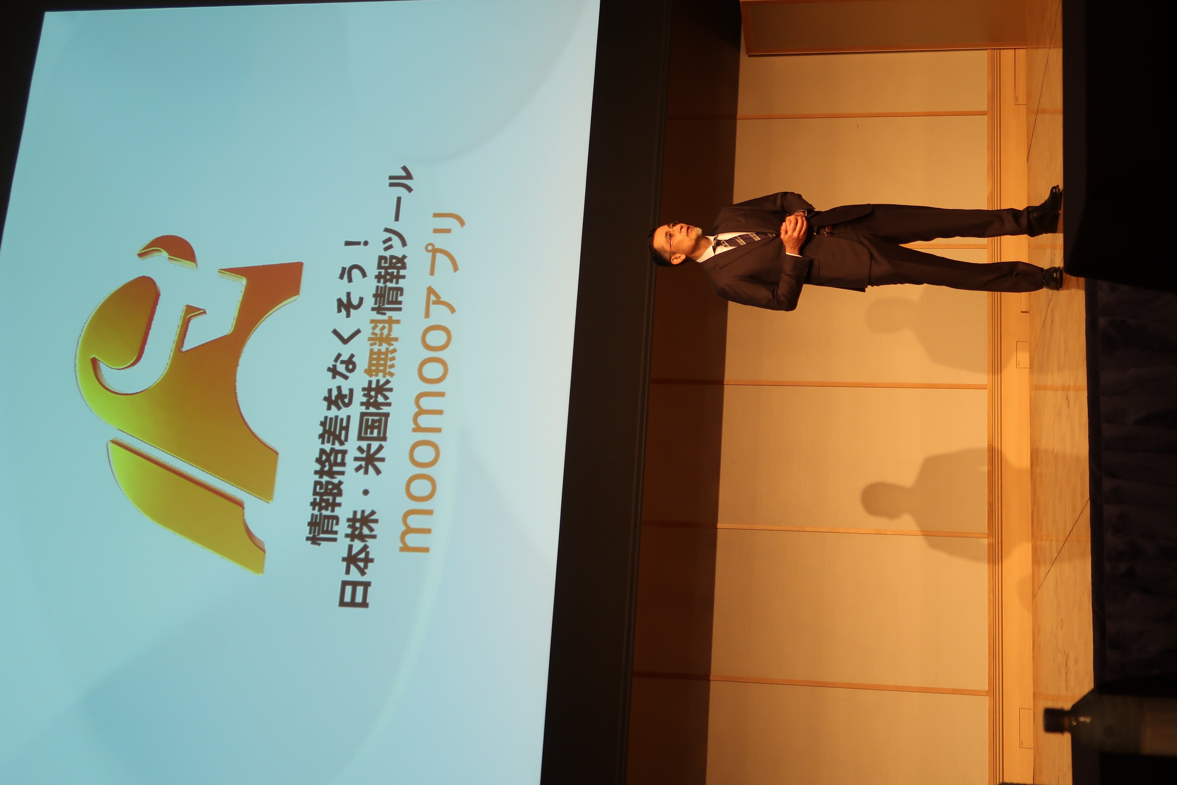 第一部の代表取締役・伊澤によるプレゼンテーションでは、moomooアプリのアップデートに関する報告や、搭載機能の使い方などが紹介されました。実践活用のアイデアとして、株の三角測量(流動性分析、ファンダメンタルズ分析、テクニカル分析)の具体例が解説されるなどmoomooアプリならではの分析方法に、来場者からは高い関心が示されていました。