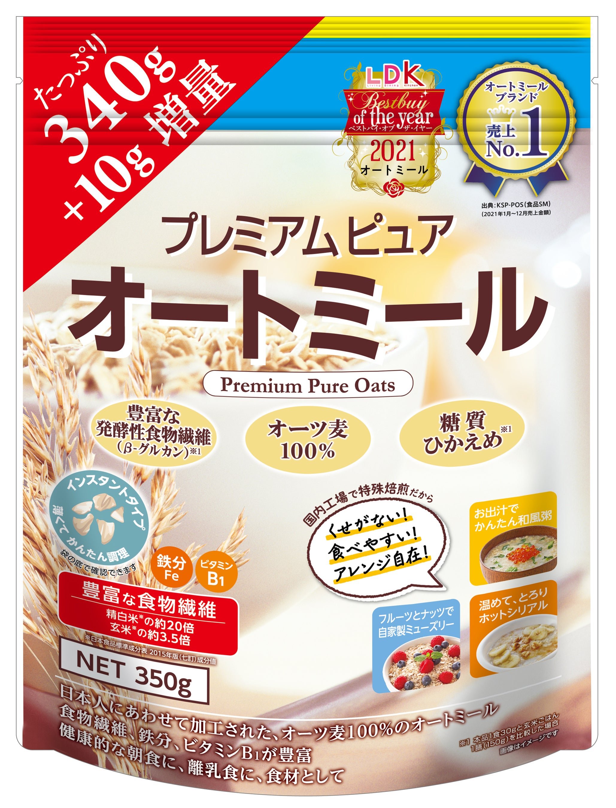 オートミールの売上№1*ブランド ⽇⾷オートミールが10g増量