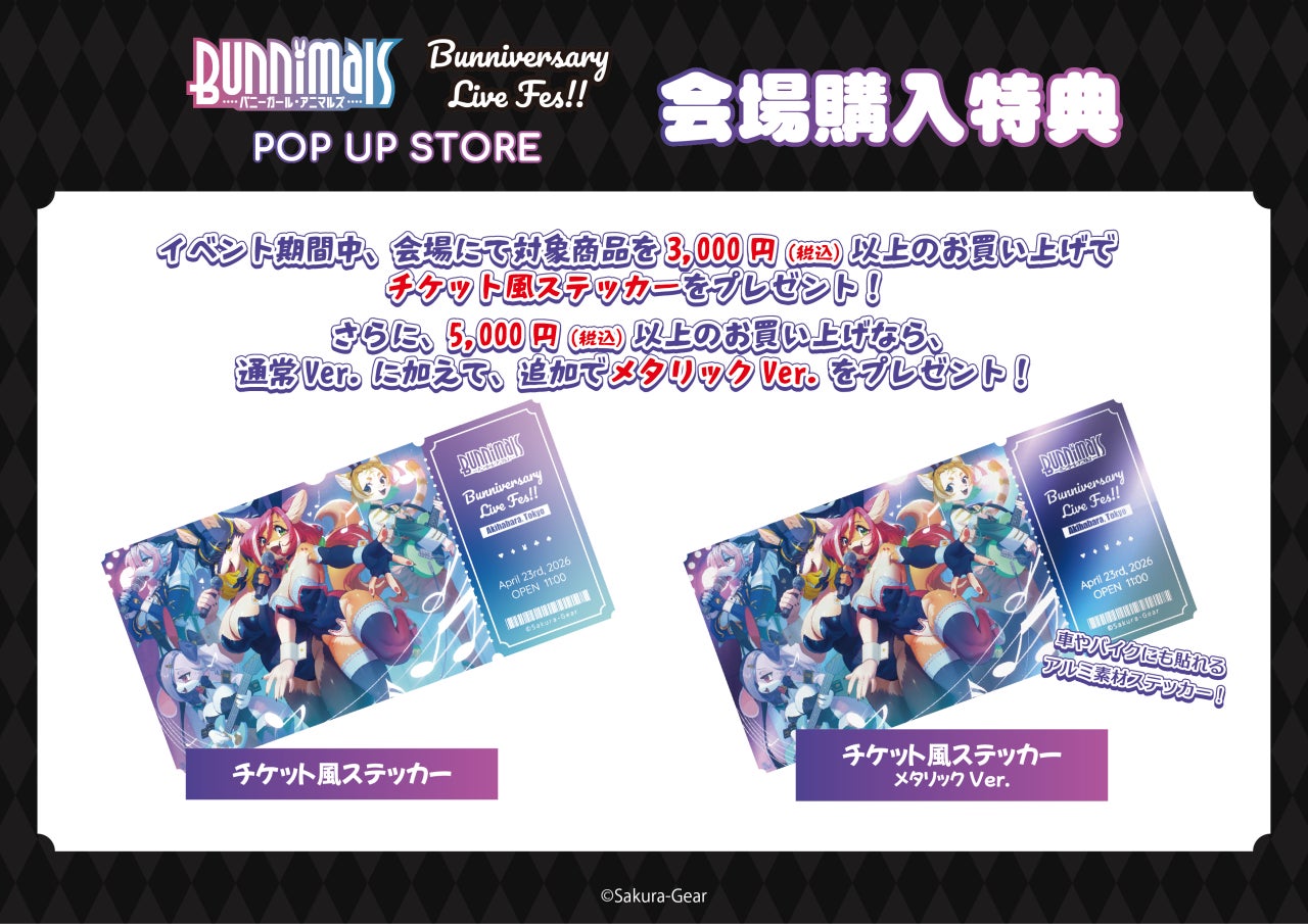 イベント期間中、会場内にて対象商品を3,000円(税込)以上のお買い上げで、オリジナルチケット風ステッカーをプレゼント!