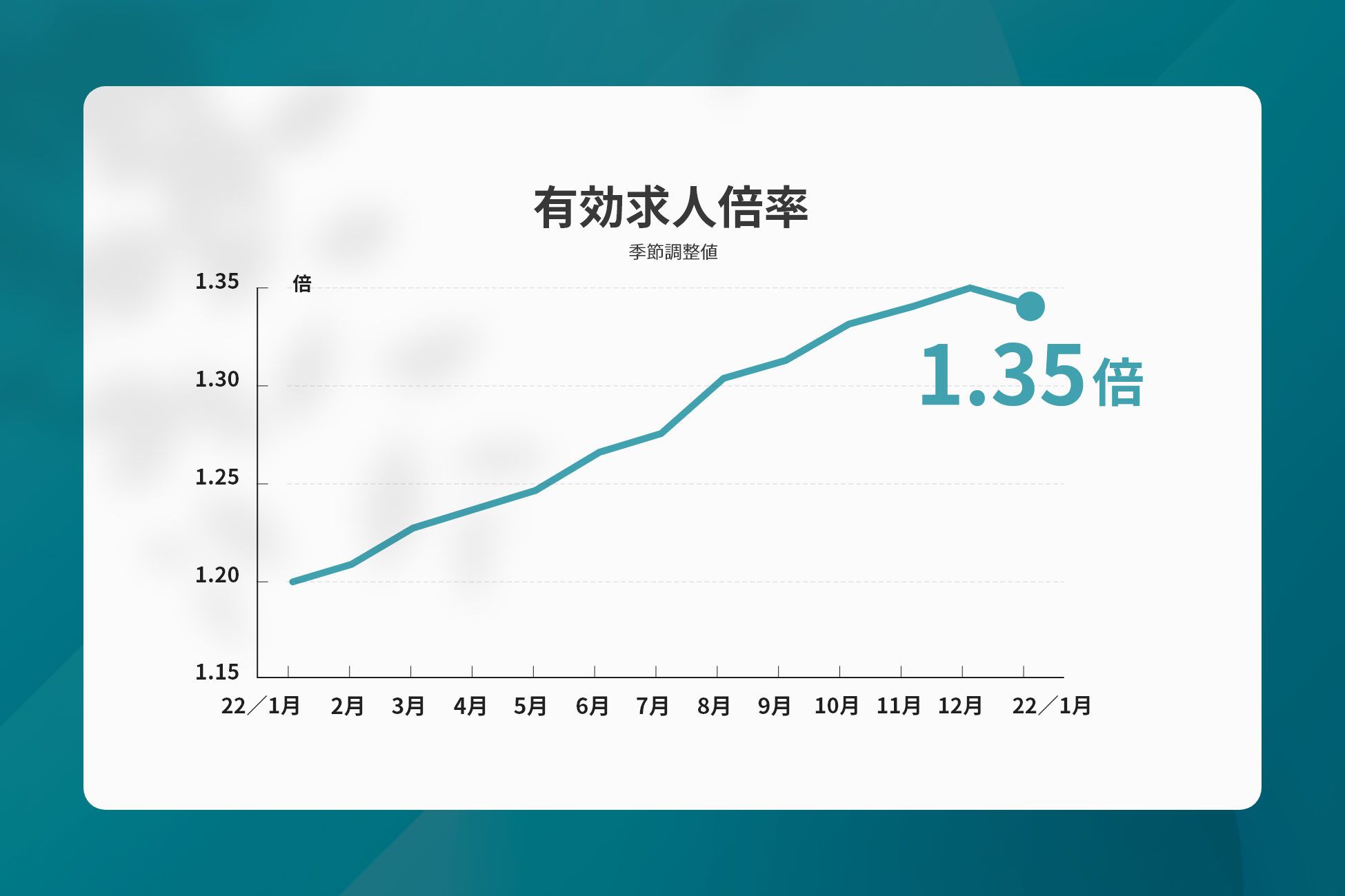 2023年1月の有効求人倍率が1.35倍を超え、売り手市場が拡大し続けています。