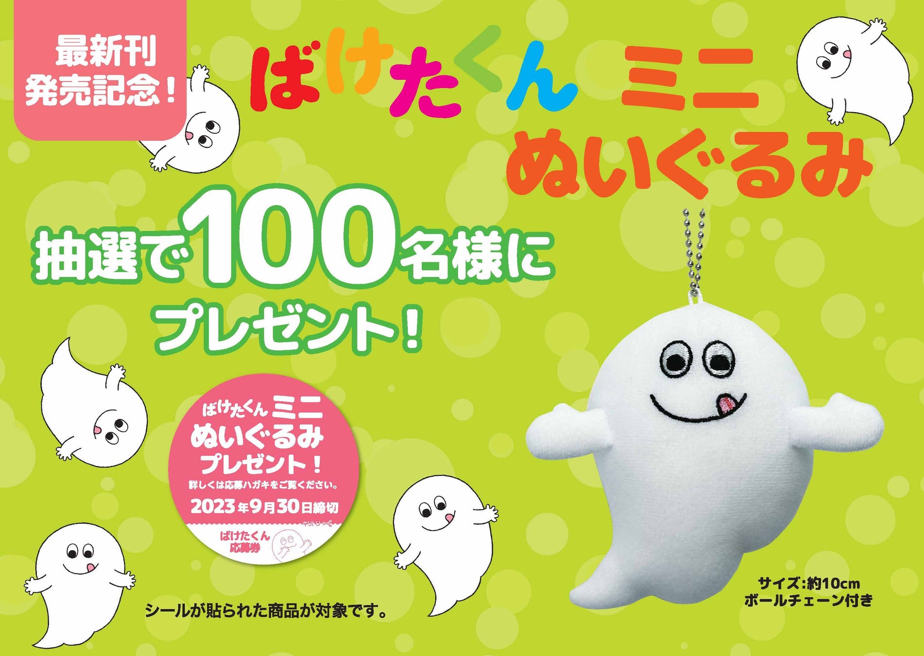 シリーズ最新刊『ばけばけばけばけ ばけたくん ゆうえんちの巻』の発売を記念して、「ばけたくんミニぬいぐるみ」が抽選で100名様に当たるキャンペーンを行います。