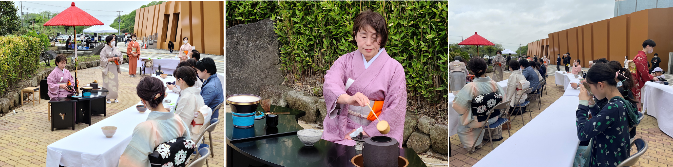 市原市内の茶華道協会に協力いただき、野点体験を実施しました。お抹茶と市原市五井の和菓子屋の主菓子を提供し、風情ある雰囲気をお楽しみいただきました。