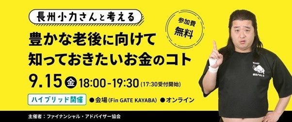 イベントでは、長州力さんのものまねでおなじみのお笑いタレント長州小力さんと一緒に、トークショーやクイズを通じて、豊かな老後に必要なお金について考えます。
