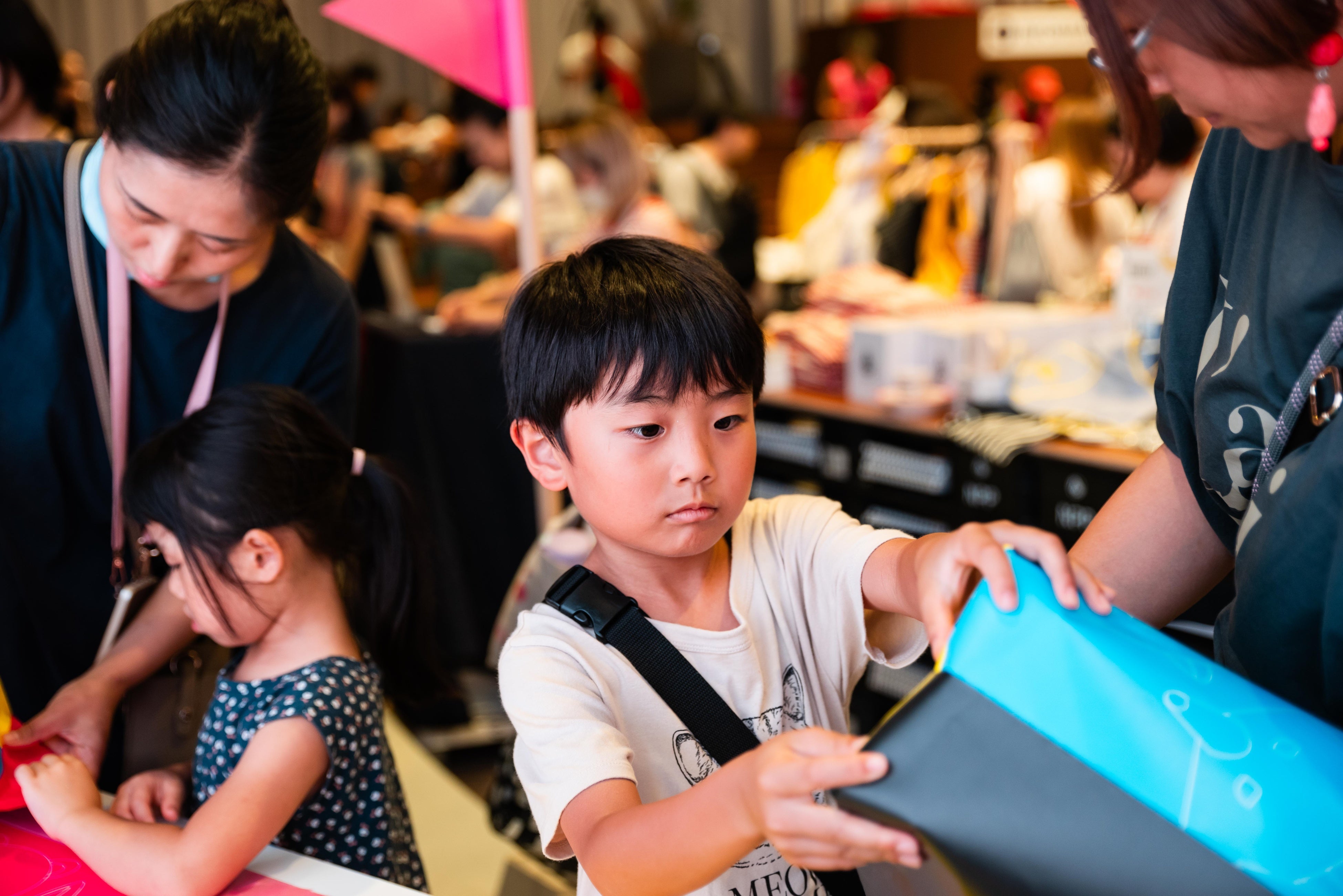 2023年7月15日(土)~16日(日)で開催された『パスザバトンマーケット Vol.12』から始まった新企画が「ぱちゅざばとんまーけっと」。大人もこどもも‟コドモゴコロ”がときめく、新設エリアとして、会場2階大ホールにて、協力企業の端材を使って工作が楽しめるキッズコーナーや、キッズ向けワークショップコーナー、アパレルや文房具、おもちゃなど、年齢を問わず好奇心が刺激されるブランドを集めた、お買いものブースを展開しました。
