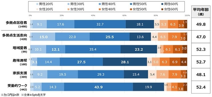 多拠点居住者は8割が男性、男性40代が最も多い傾向