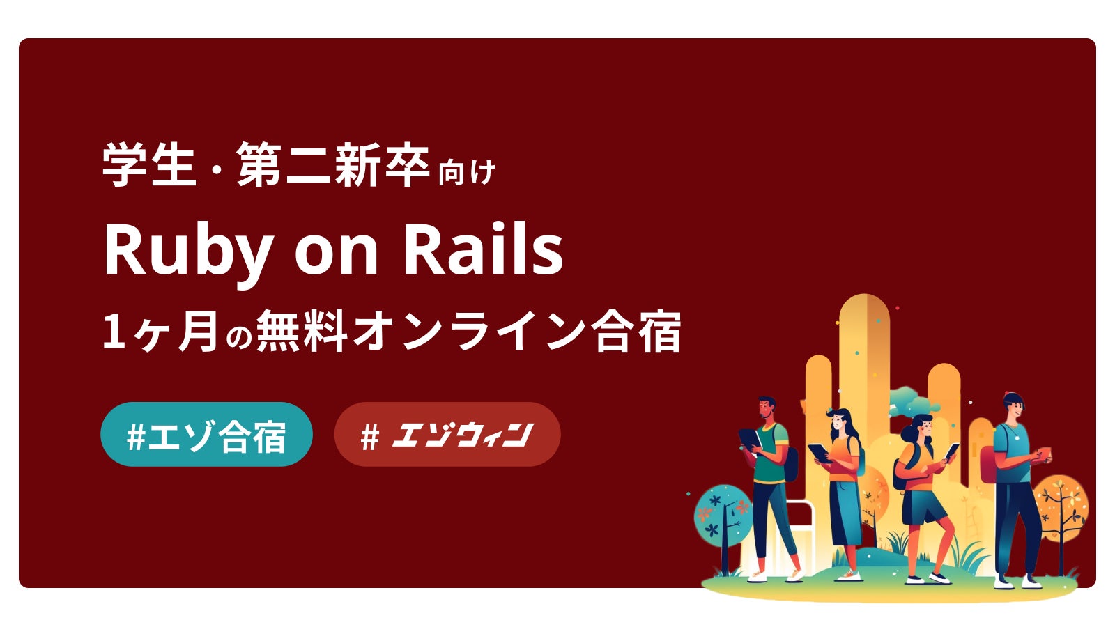 エゾウィン株式会社(本社:北海道標津町、代表取締役:大野宏、以下「エゾウィン」)は学生、第二新卒を対象とした「Webエンジニアになるためのオンラインプログラミング合宿 エゾ合宿2023」を開催いたします。未経験からWeb開発現場でのニーズが高い「Ruby on Rails(ルビーオンレイルズ)」を無料で学べるカリキュラムをご用意いたしました。