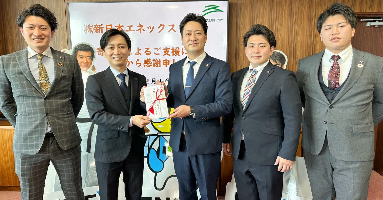 趣旨:株式会社新日本エネックスから、宮崎市の子どもたちの未来を応援するために役立ててほしいとの申出があり、「宮崎市子どもの未来応援基金」への寄附金をいただきました。このため、本市へ寄附金等を贈呈していただくとともに、市長から感謝状をお渡しします