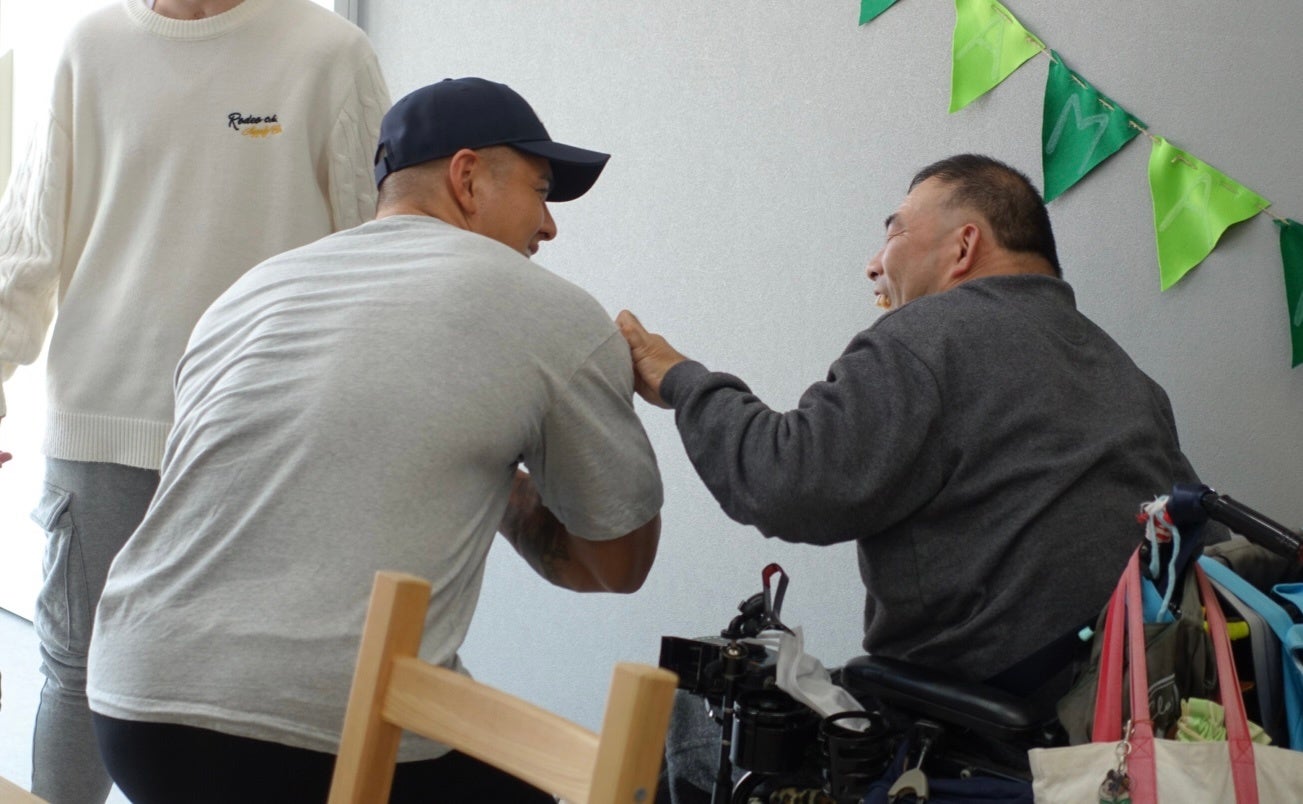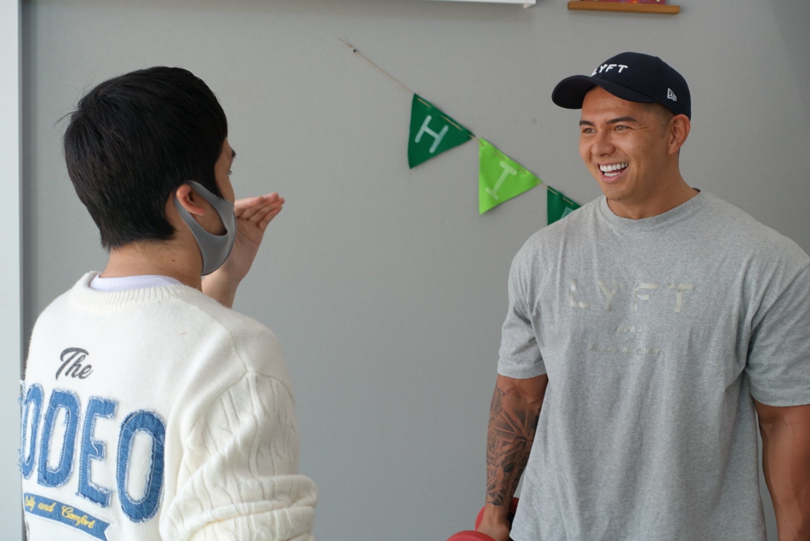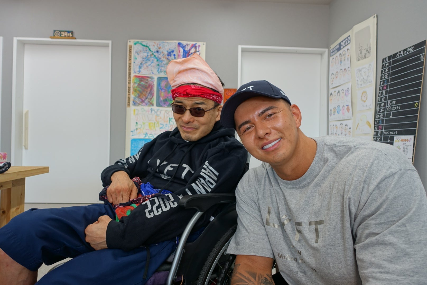 『実業団との合同トレーニングでは、全員がとても熱心にもの凄い眼差しで僕のレクチャーを聞く姿から、トレーニングが本当に好きなんだと感じましたし、選手としても結果を出したいという強い意志が伝わりました。この実業団から各団体で優勝する選手がたくさん出てくることを信じています。また利用者様と初めて交流し、みなさんとても明るくてユーモアもあり、施設で働くスタッフの関わりや施設の環境がとても良いんだなと感じました。ハンディキャップがある中で筋トレをしている利用者様には驚いたと同時にとても嬉しい気持ちになりました。トレーニングは心身ともに健康になるので利用者様にもさらにトレーニングの素晴らしさや楽しさを共有して、いつかはハンディキャップをもつ方たちの大会など開催できたらいいなと丹羽代表とお話させていただきました。』