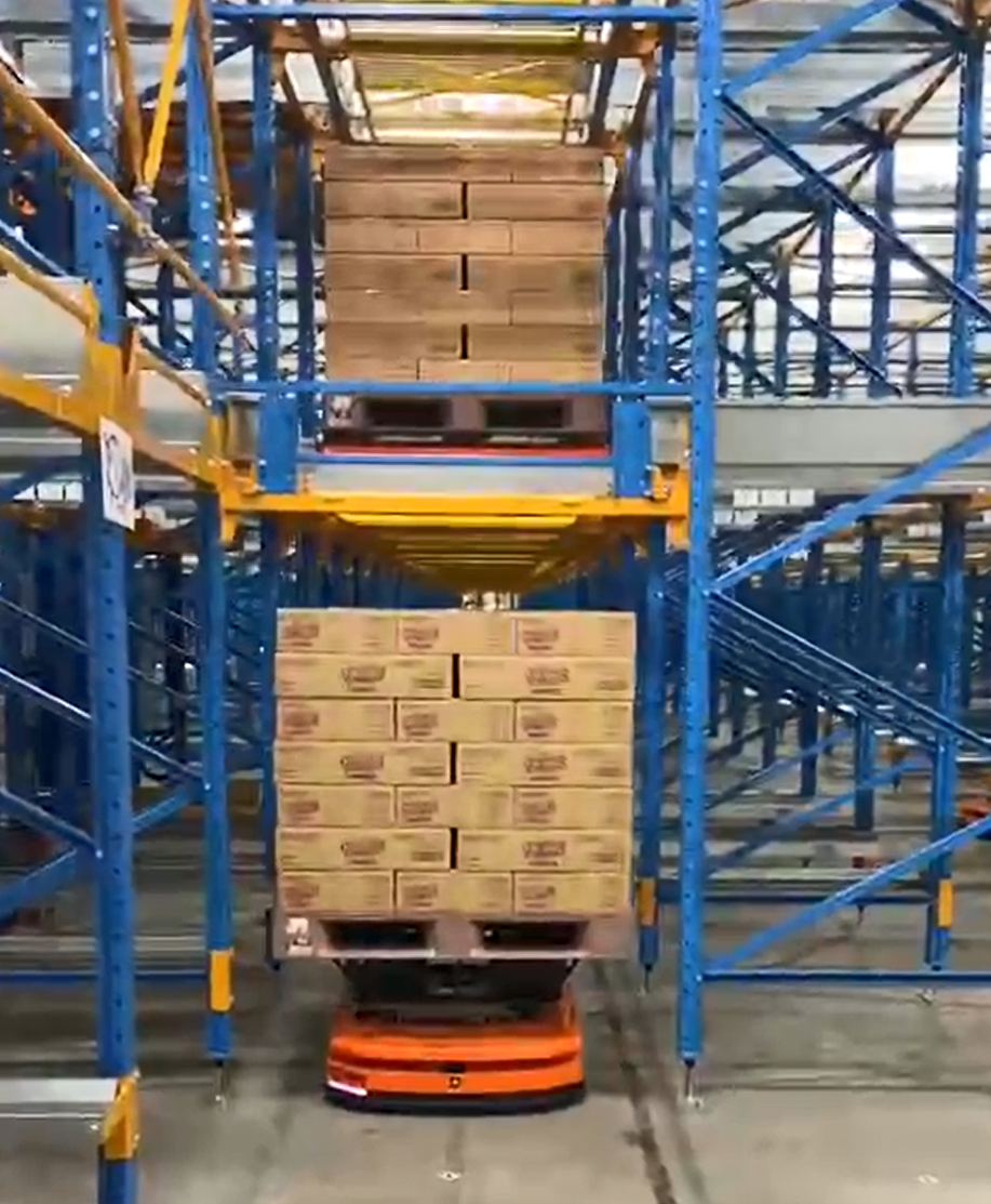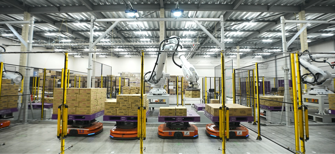 さらに、混載のケース・ピッキングが可能なビジョン認識ロボットアームをピッキングステーションに使用することで、これまでの人為的フォークリフトによるピックング作業を実質、ほぼ完全無人化することに成功しました。