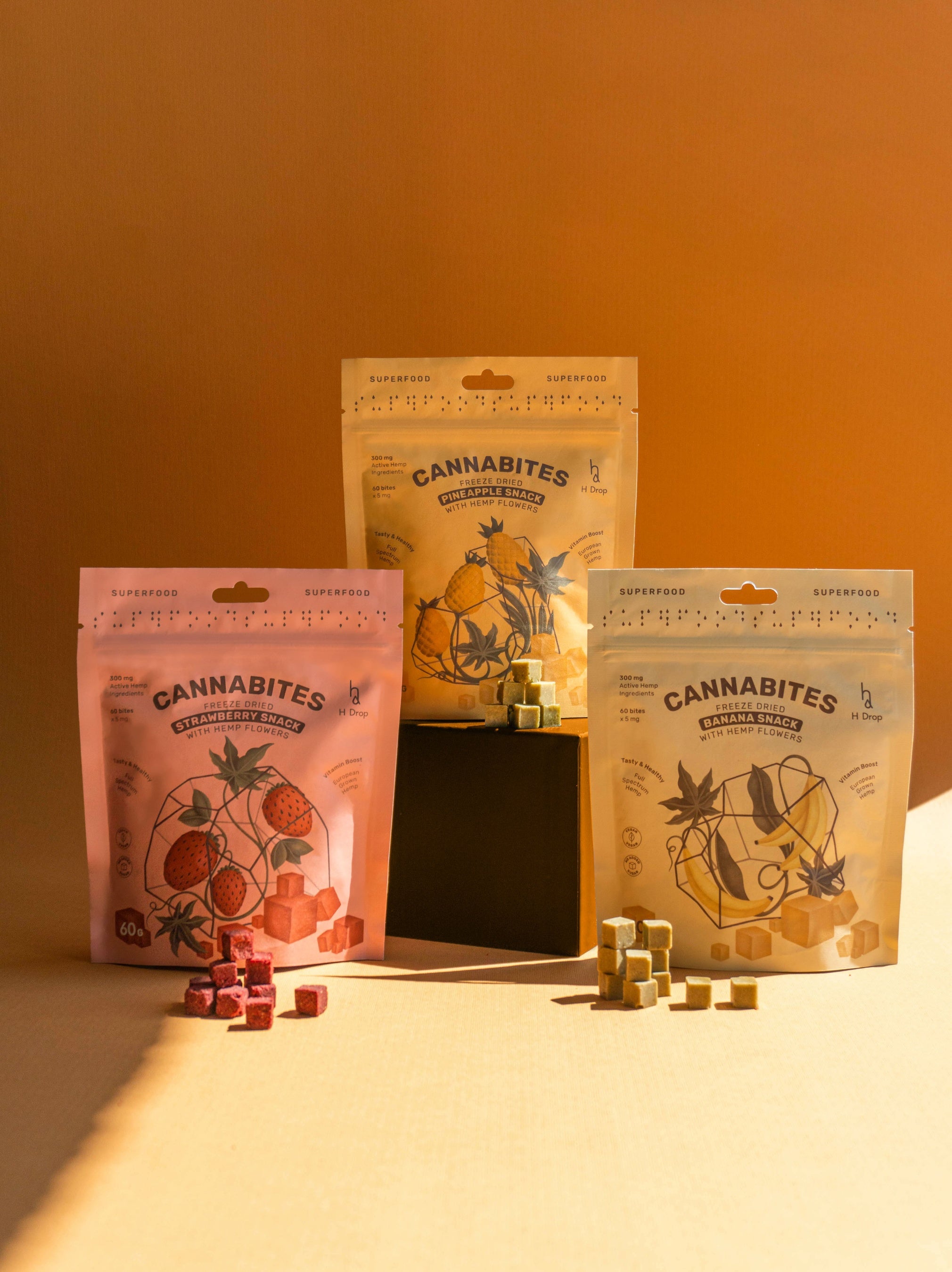 FOODEX(国際飲食展)で先行お披露目、日本初上陸新商品[CBD BITES]の製造販売決定。CBD製品で"健康的なお菓子"を追求した新感覚CBD製品。H Drop全商品販売価格の値下げのお知らせ。