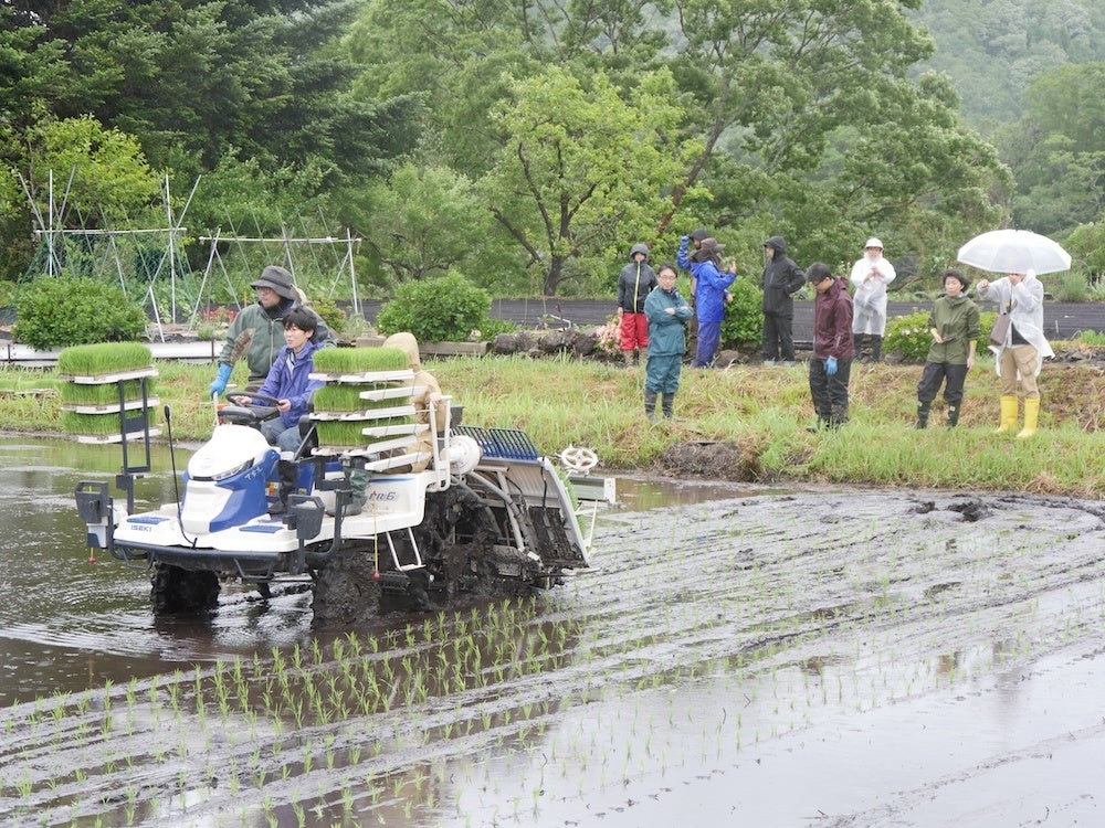 第1回目の田植えイベントを2025年5月24日に実施し、渡米中の赤澤亮正経済再生担当大臣からの祝文が披露され、鳥取県農業振興局、鳥取県議会からの来賓とメンバーらがベテラン農家からの指導により手植えと機械植えを行いました。田植えイベント後の6月より、メンバーのうち1名が、農事組合法人の農作業サポートとして江府町に継続的に滞在することとなり、就農人口増加につながる関係人口増加につながりました。