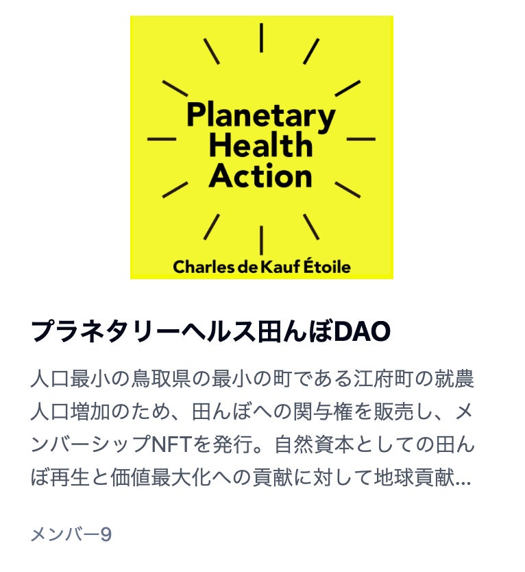 「田んぼDAOプロジェクト」は、プラネタリーヘルスの社会基盤をつくる「プラネタリーヘルスDAO」の第一弾として、環境再生・地域活性・自然資本の再評価を軸に地方創成2.0を目指し、リアルとオンライン上のDAOコミュニティを通じて田んぼに関与できる持続可能な農業を推進する取り組みです。